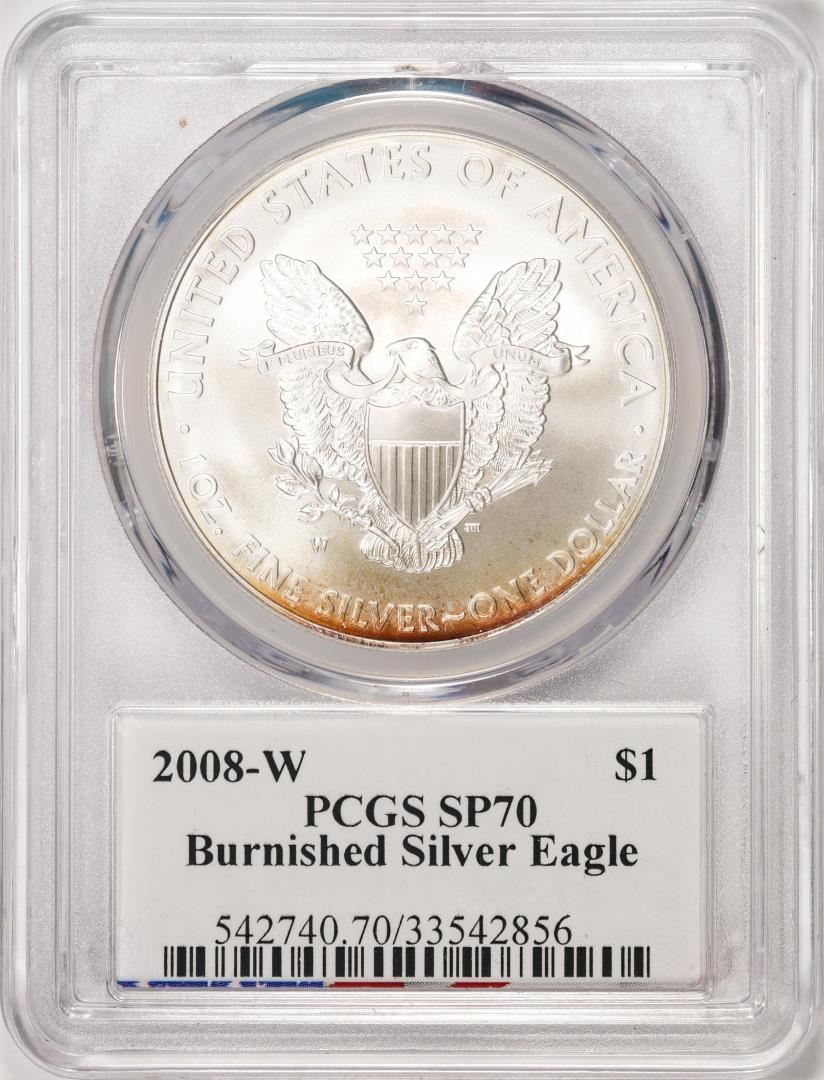 One 2008-W $1 Burnished American Silver Eagle Coin PCGS SP70 Edmund C. Moy Signature. PCGS Graded.