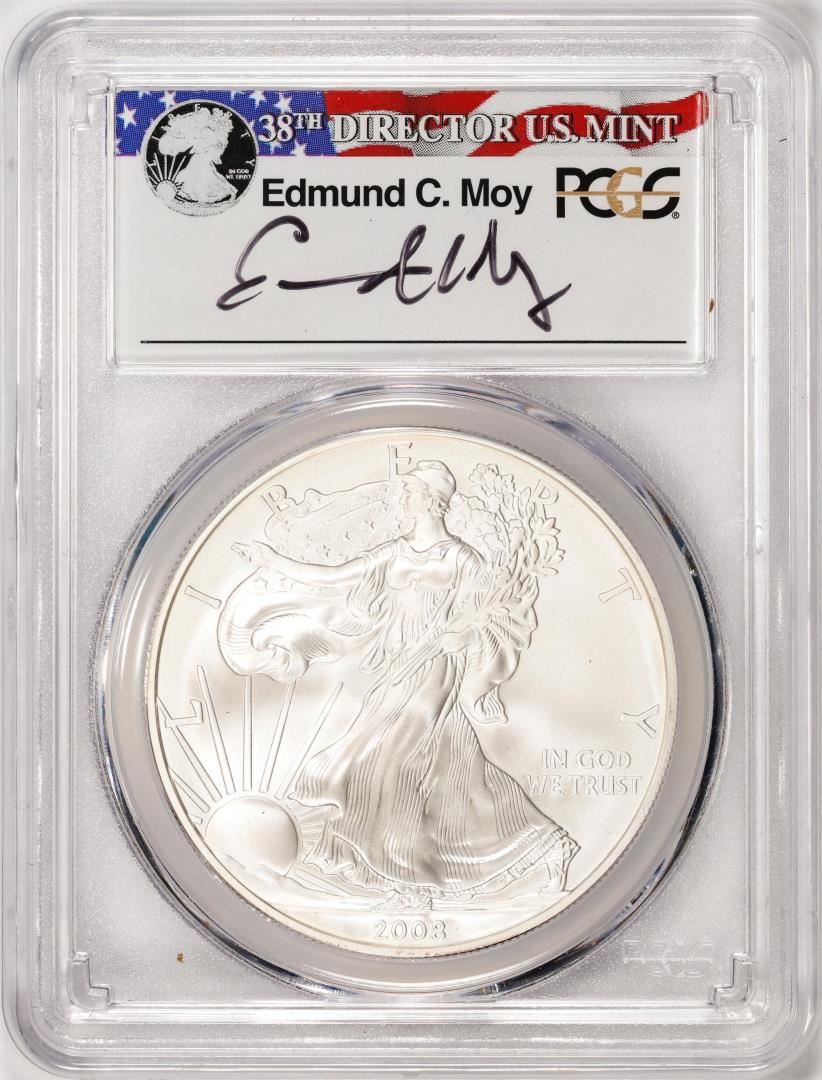 2008-W $1 Burnished American Silver Eagle Coin PCGS SP70 Edmund C. Moy Signature