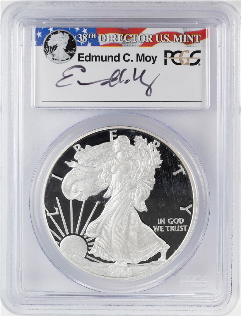 2008-W $1 Proof American Silver Eagle Coin PCGS PR69DCAM Moy Signature