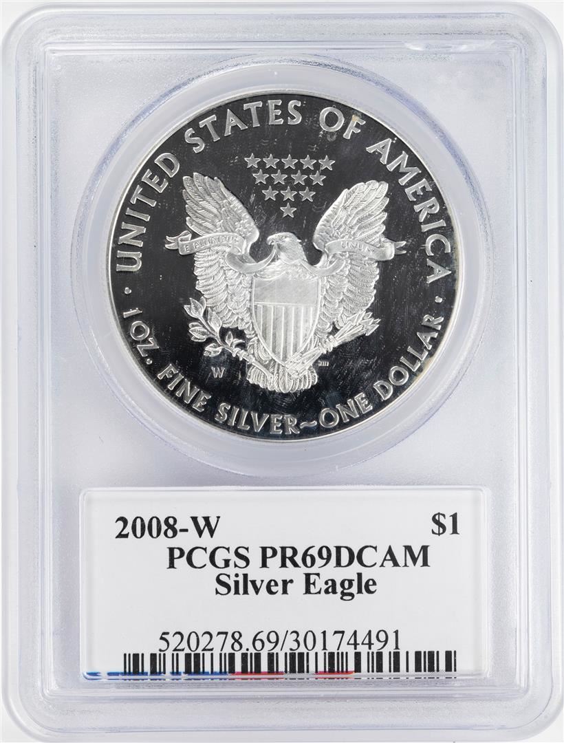 One 2008-W $1 Proof American Silver Eagle Coin PCGS PR69DCAM Moy Signature. PCGS Graded.