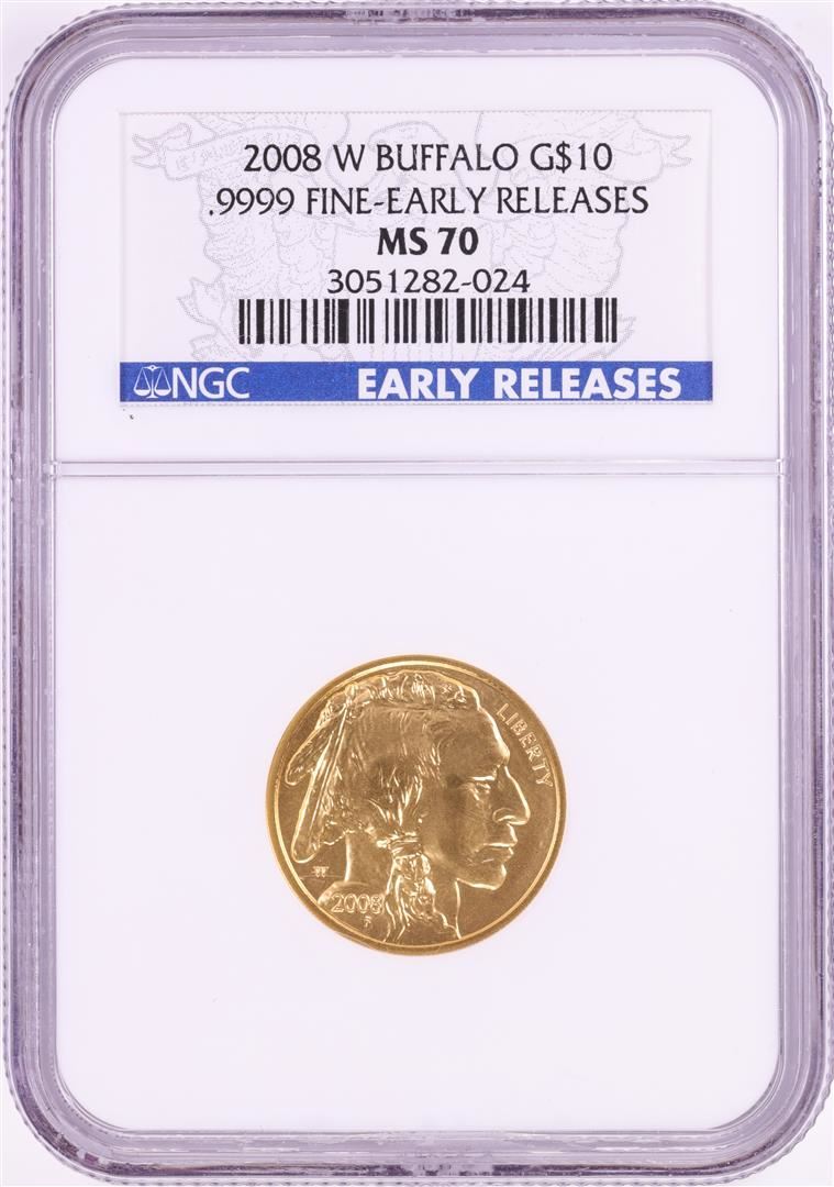 One 2008-W $10 American Buffalo Gold Coin NGC MS70 Early Releases. NGC Certified.