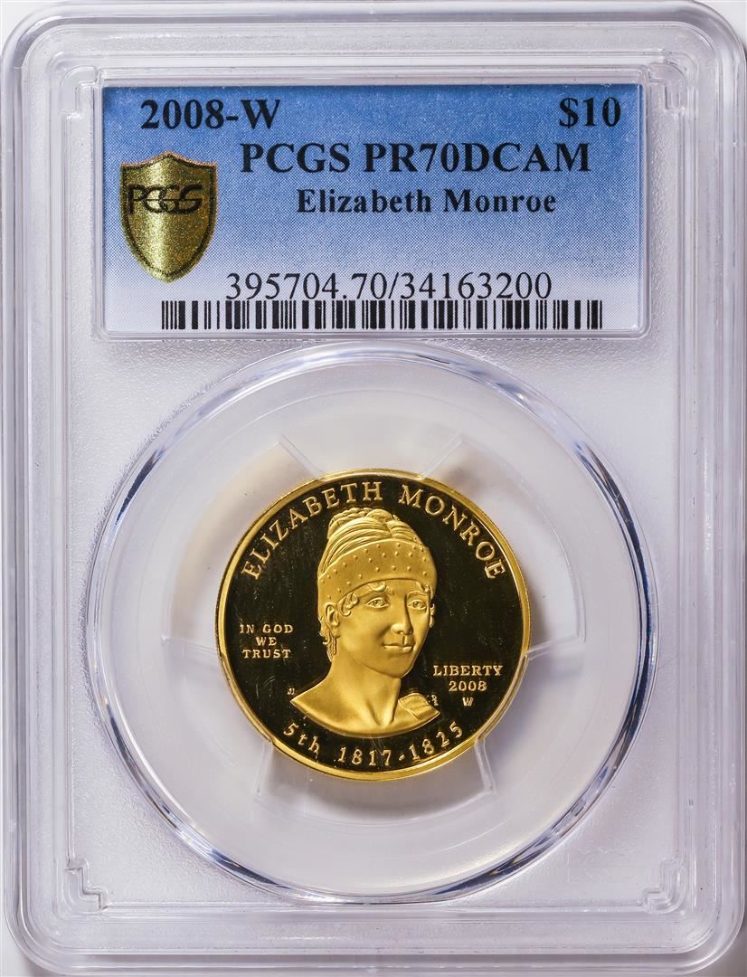 One 2008-W $10 Elizabeth Monroe Gold Coin PCGS PR70DCAM.