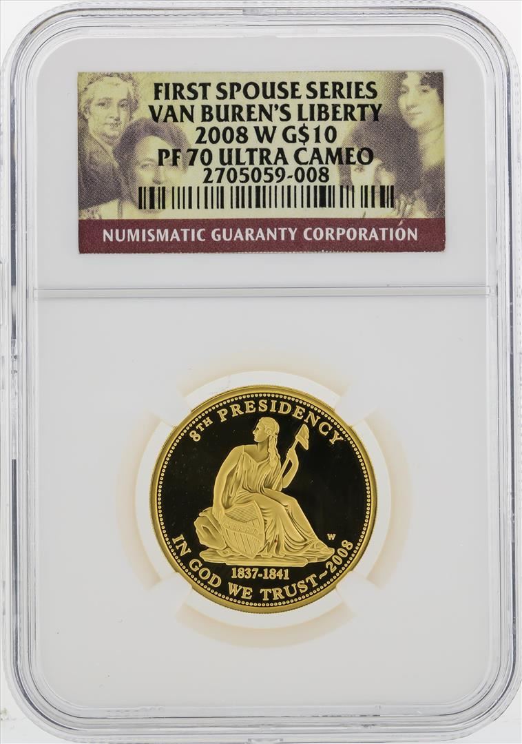 One 2008 W $10 First Spouse Series Van Buren Gold Coin NGC PF70 Ultra Cameo. NGC Certified.