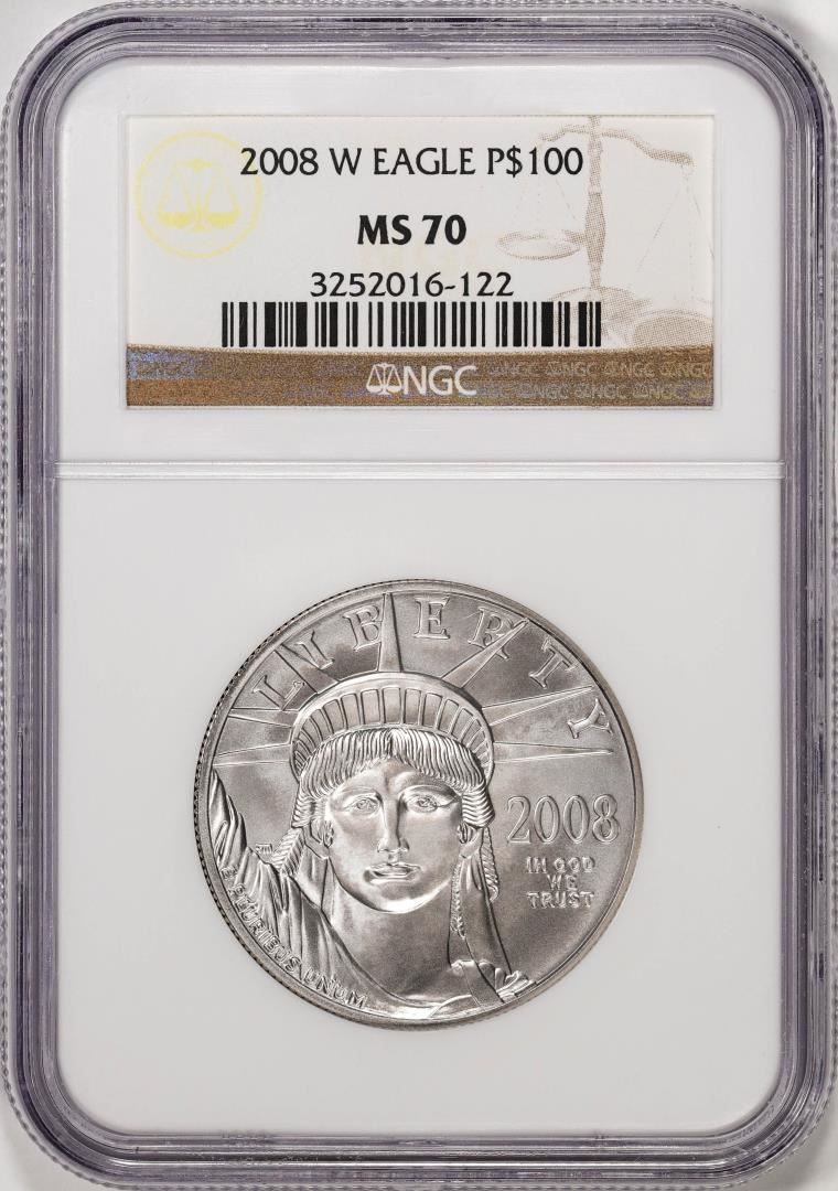One 2008-W $100 Burnished Platinum Eagle Coin NGC MS70. NGC Certified.