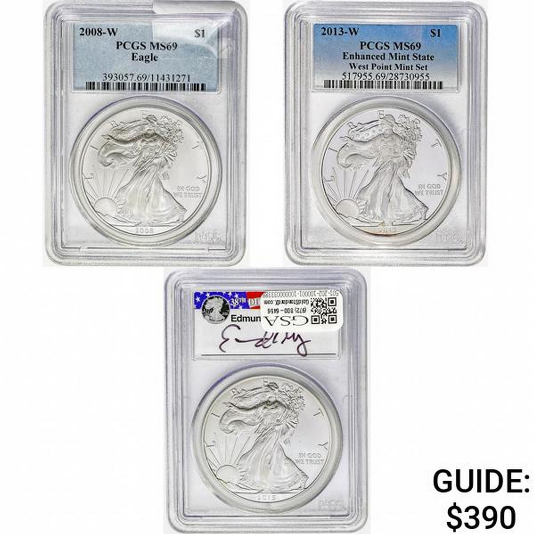 2008-W - 2015 [3] $1 ASE 1 OZ PCGS MS69-70