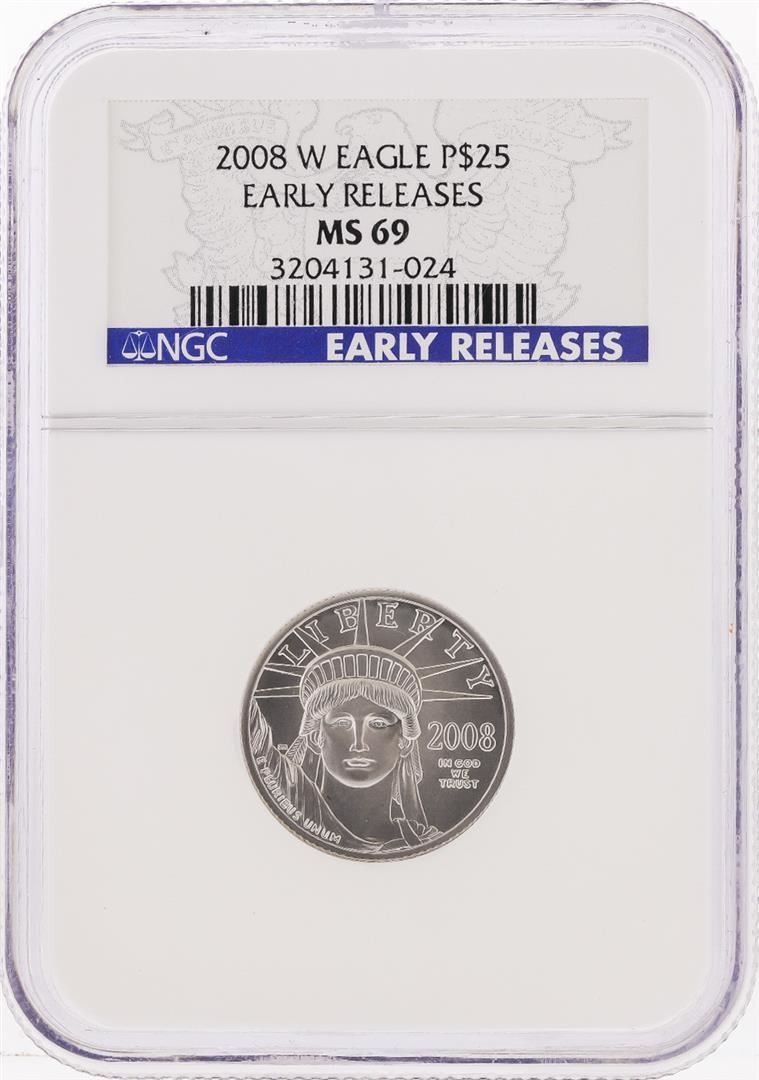 2008-W $25 American Platinum Eagle Coin NGC Early Releases MS69