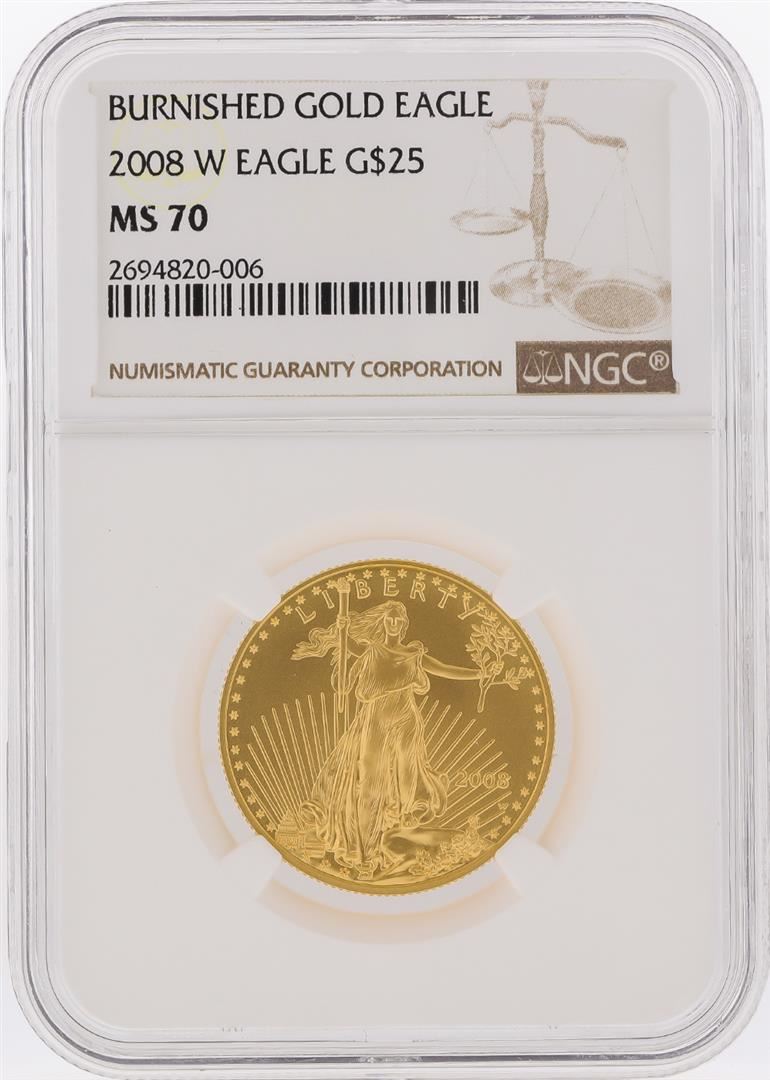 One 2008-W $25 Burnished American Gold Eagle Coin NGC Graded MS70. NGC Certified.