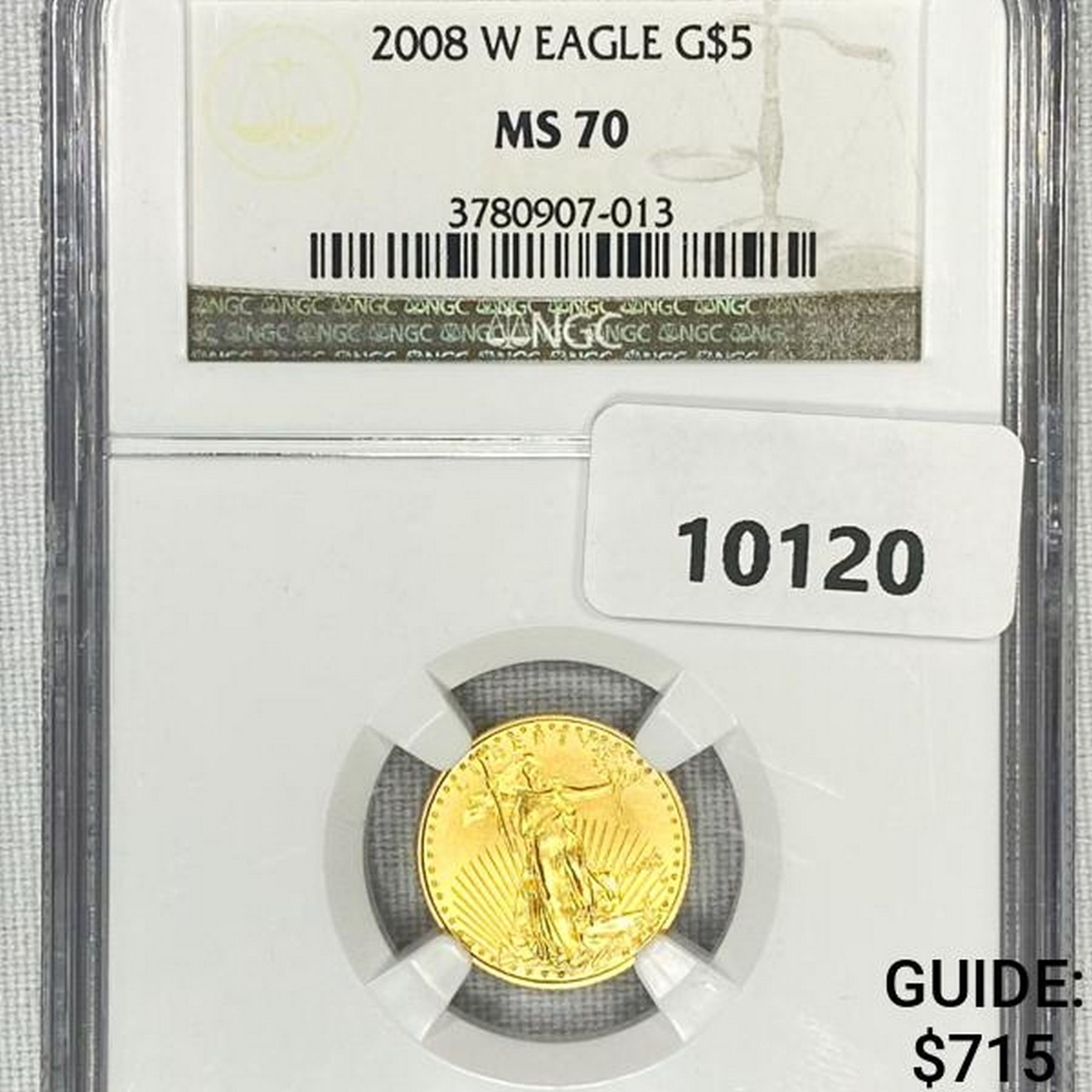 2008-W $5 1/10 oz American Gold Eagle NGC-MS70