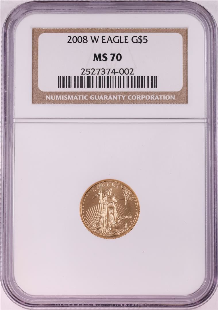 One 2008-W $5 American Gold Eagle Coin NGC MS70. NGC Certified.