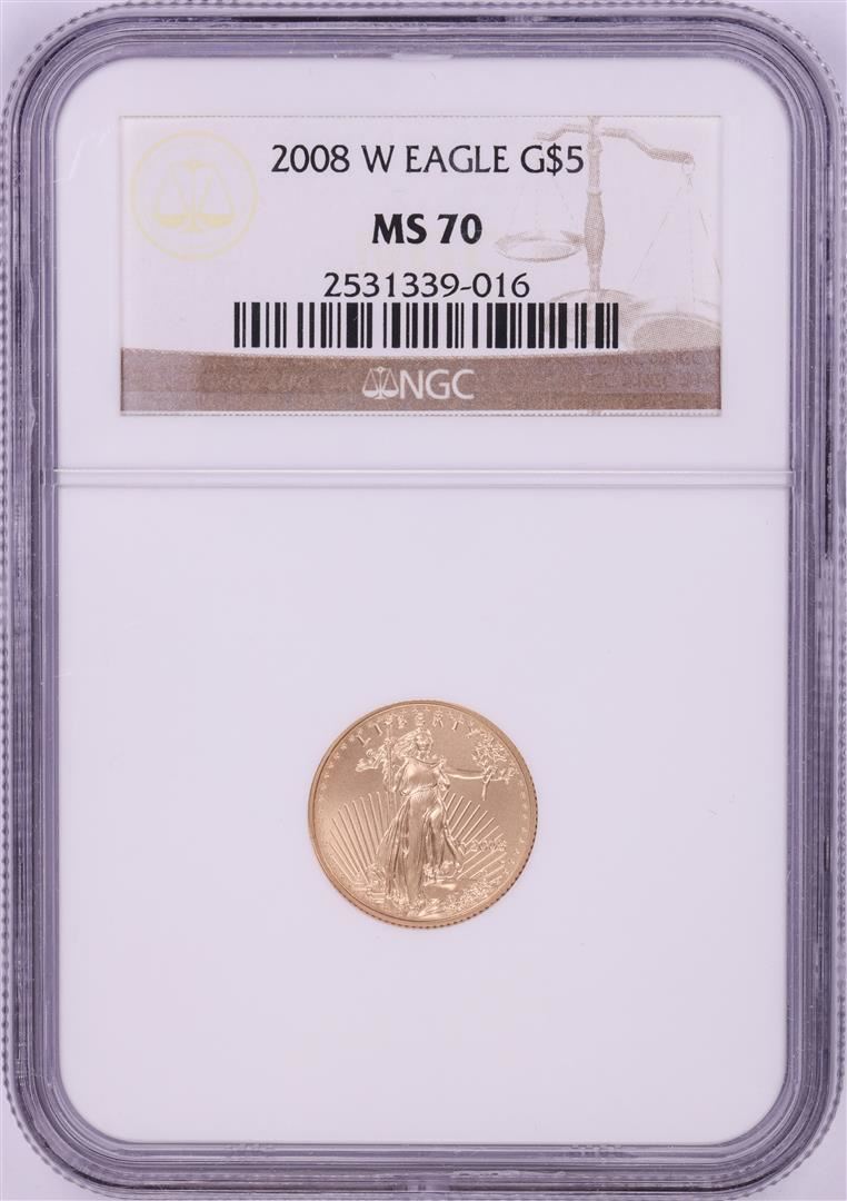 One 2008-W $5 American Gold Eagle Coin NGC MS70. NGC Certified.