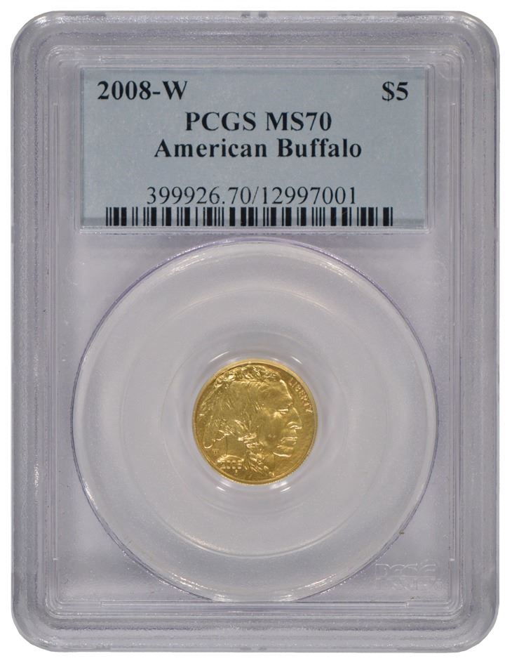 One 2008-W $5 Buffalo 1/10 oz Gold Coin PCGS MS70.