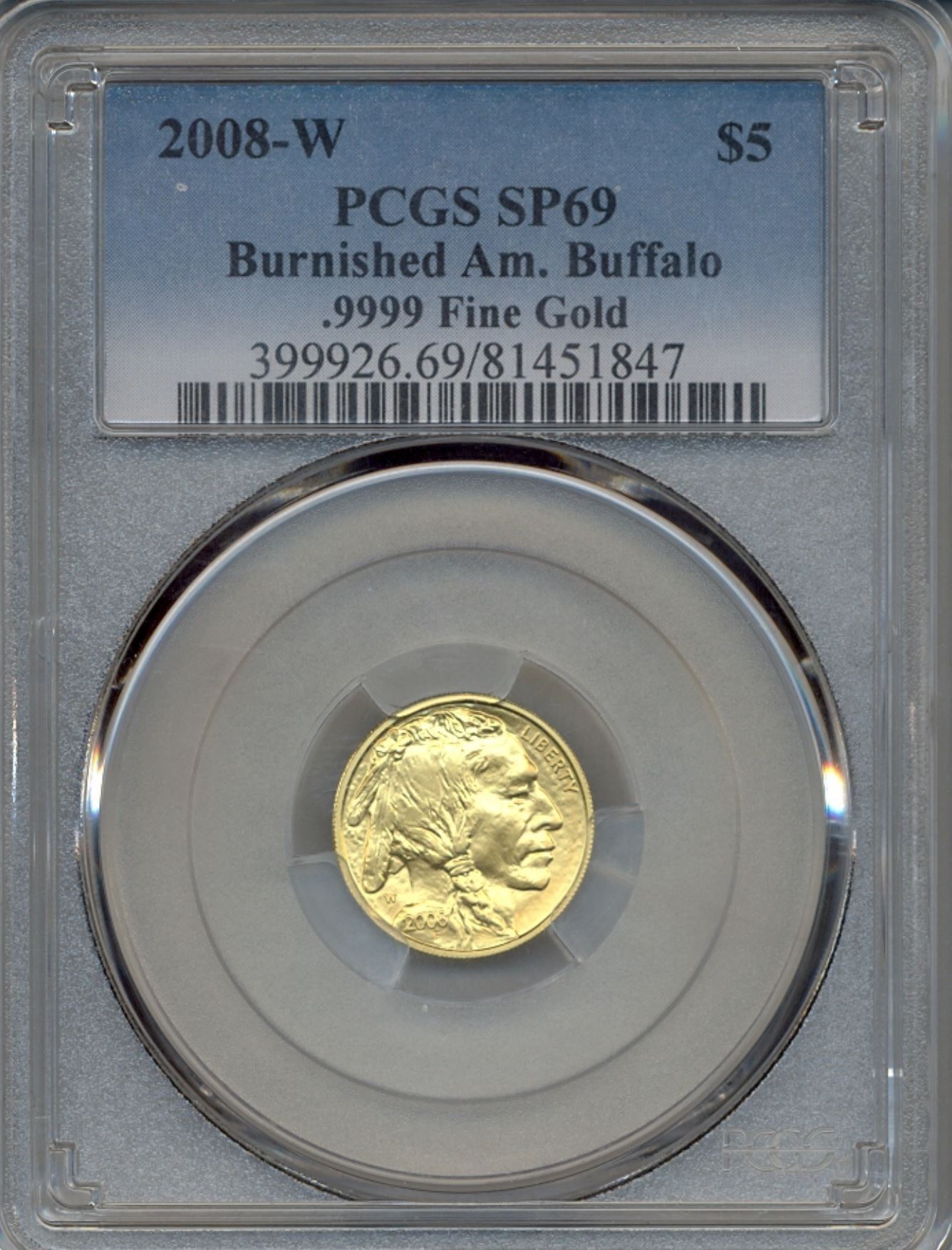 One 2008-W $5 Buffalo Gold Coin PCGS SP69.