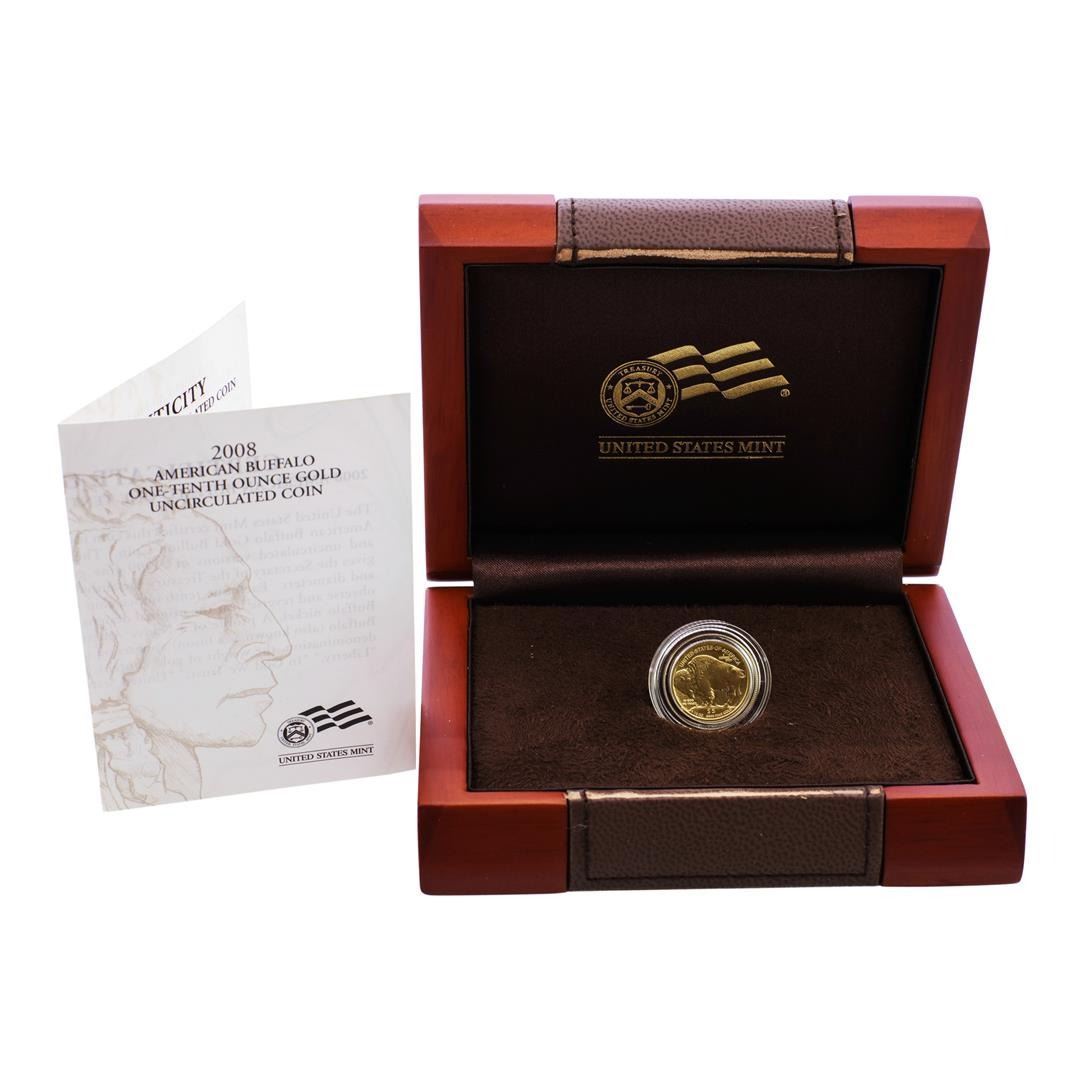 One 2008-W $5 Proof American Buffalo 1/10 oz. Gold Coin w/ Box & COA.