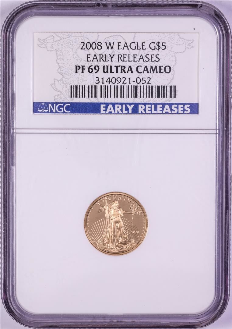 One 2008-W $5 Proof American Gold Eagle Coin NGC PF69 Ultra Cameo Early Releases. NGC Certified.