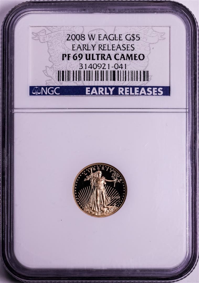One 2008-W $5 Proof American Gold Eagle Coin NGC PF69 Ultra Cameo Early Releases. NGC Certified.