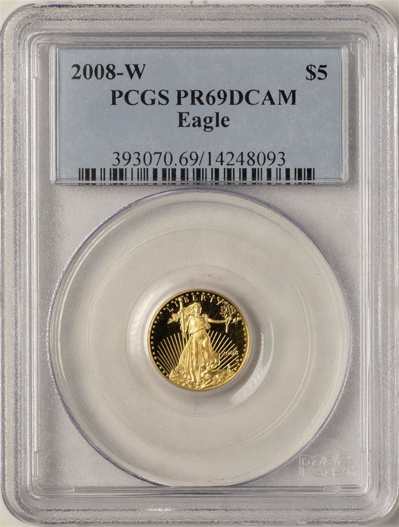 One 2008-W $5 Proof American Gold Eagle Coin PCGS PR69DCAM. PCGS Graded.