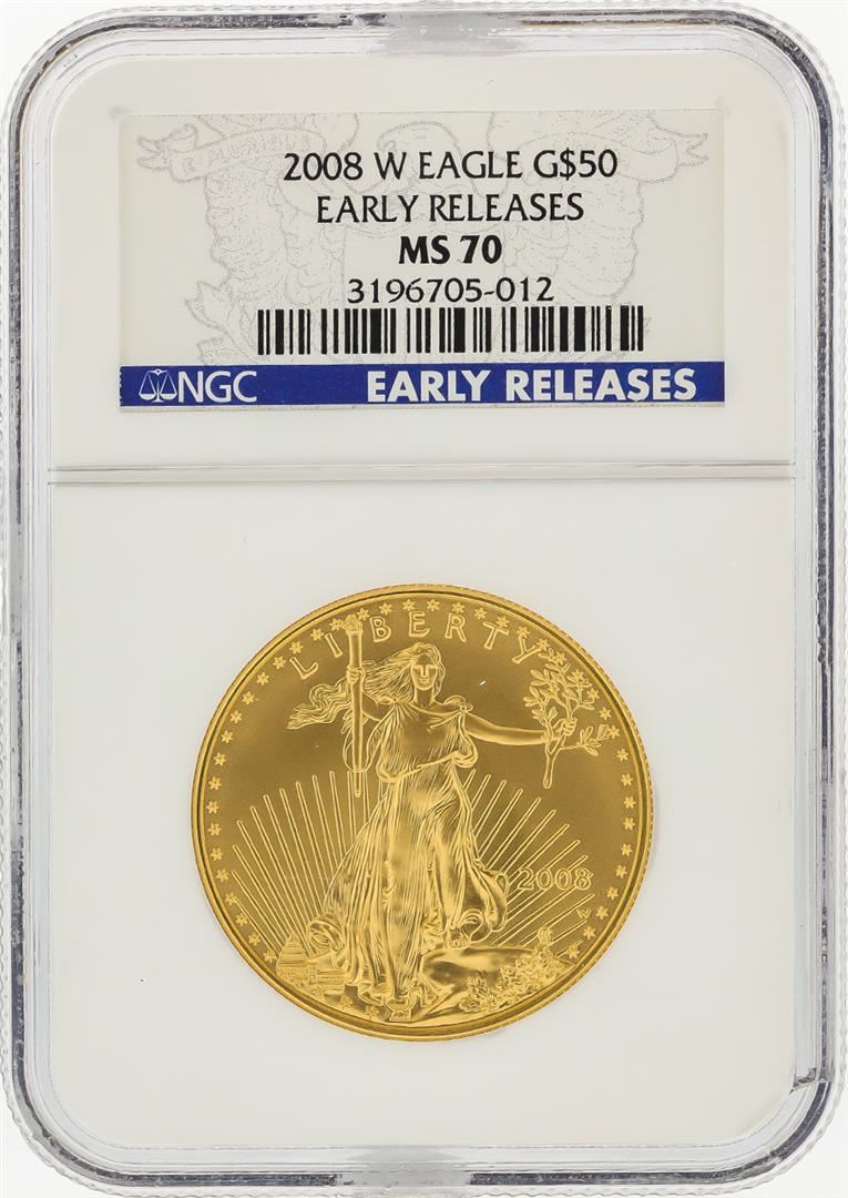 One 2008-W $50 American Gold Eagle Coin First Releases NGC MS70. NGC Certified.