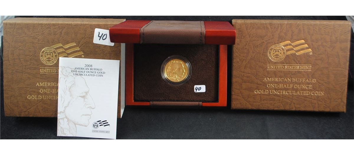 2008-W AMERICAN BUFFALO ONE-HALF OZ .9999 GOLD UNCIRCULATED COIN WITH ORIGINAL BOX - DISPLAY CASE & CERTIFICATE OF AUTHENTICITY