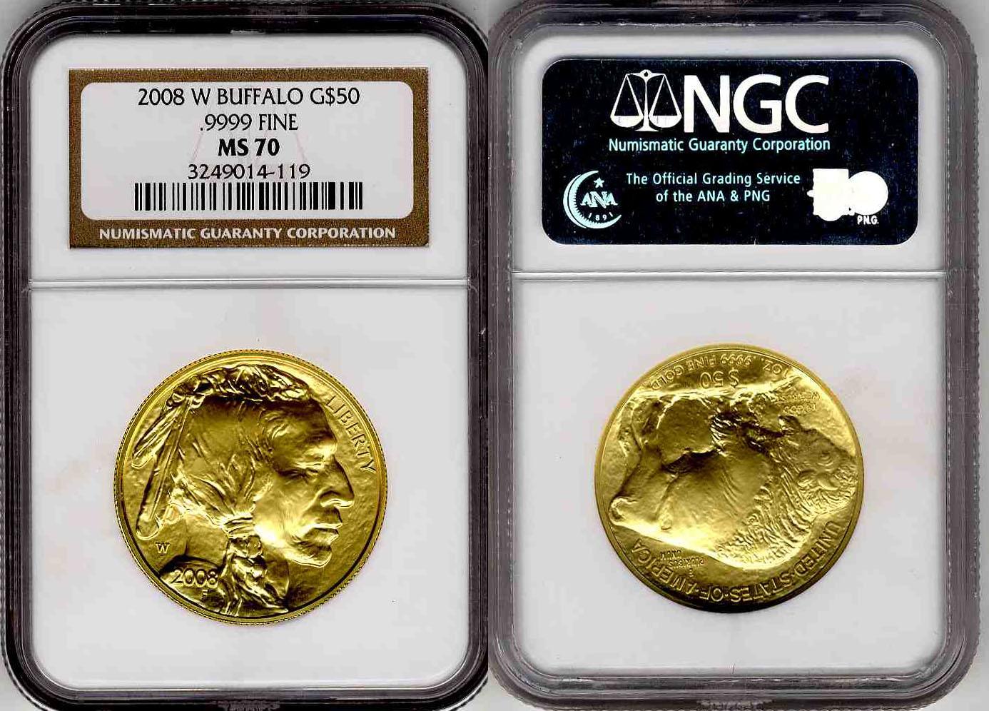 2008-W -- American Buffalo Gold Coin $50 -- NGC Graded MS70