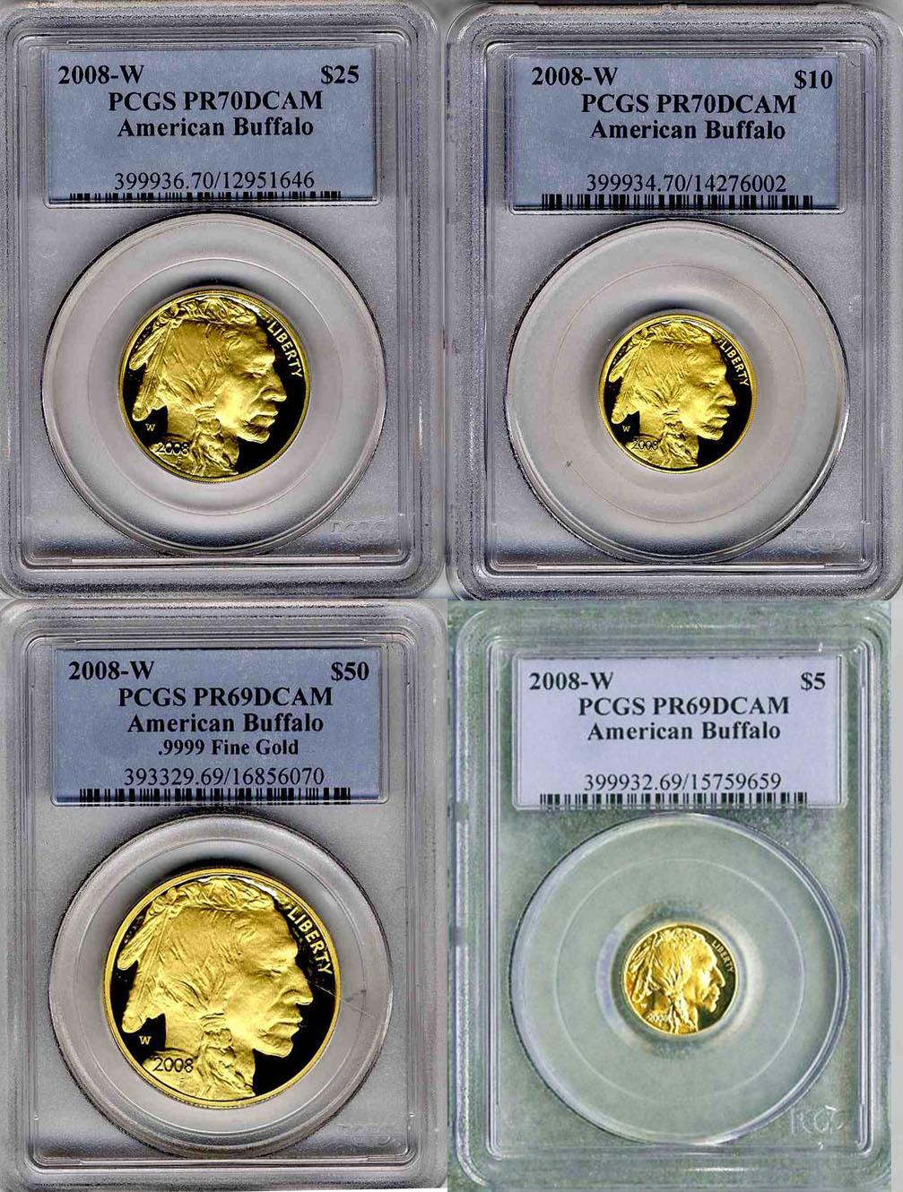 2008-W -- American Buffalo Gold Coins: $5, $10, $25 & $50 -- PCGS PR69-70DCAM