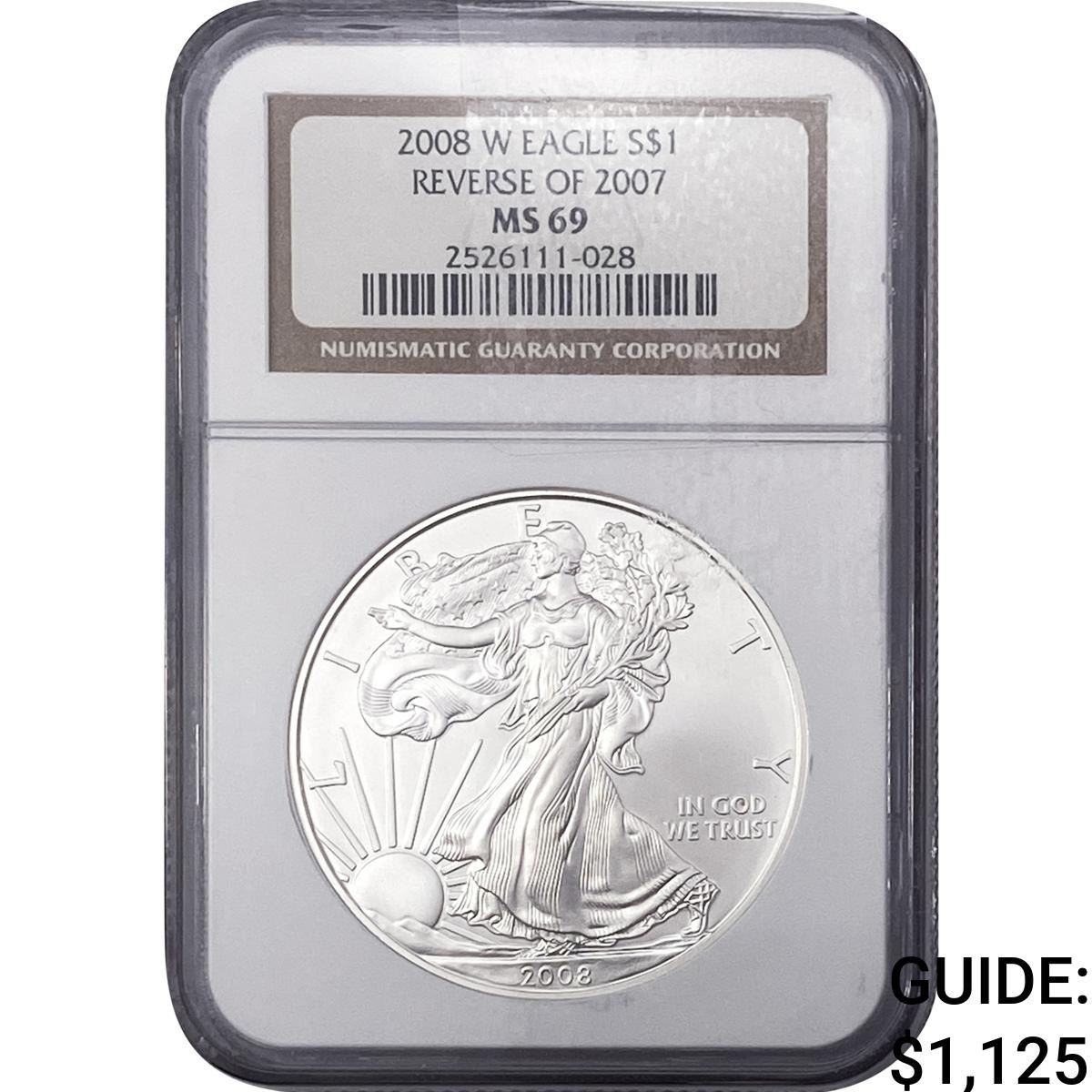 2008-W American Silver Eagle Dollar NGC MS69 2007 REVERSE