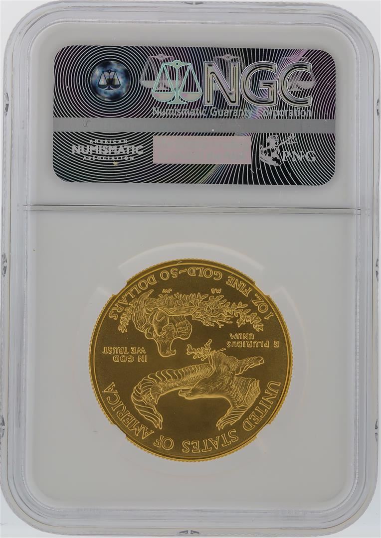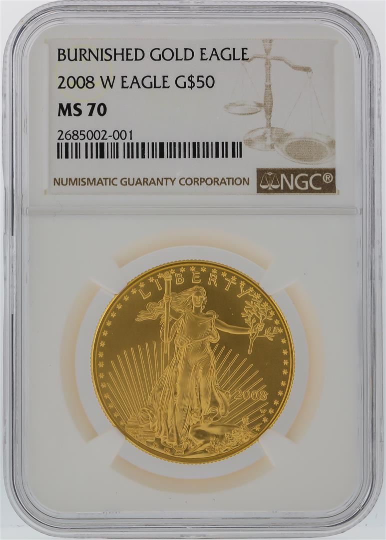 One 2008-W NGC MS70 $50 Burnished Gold Eagle Gold Coin. NGC Certified.