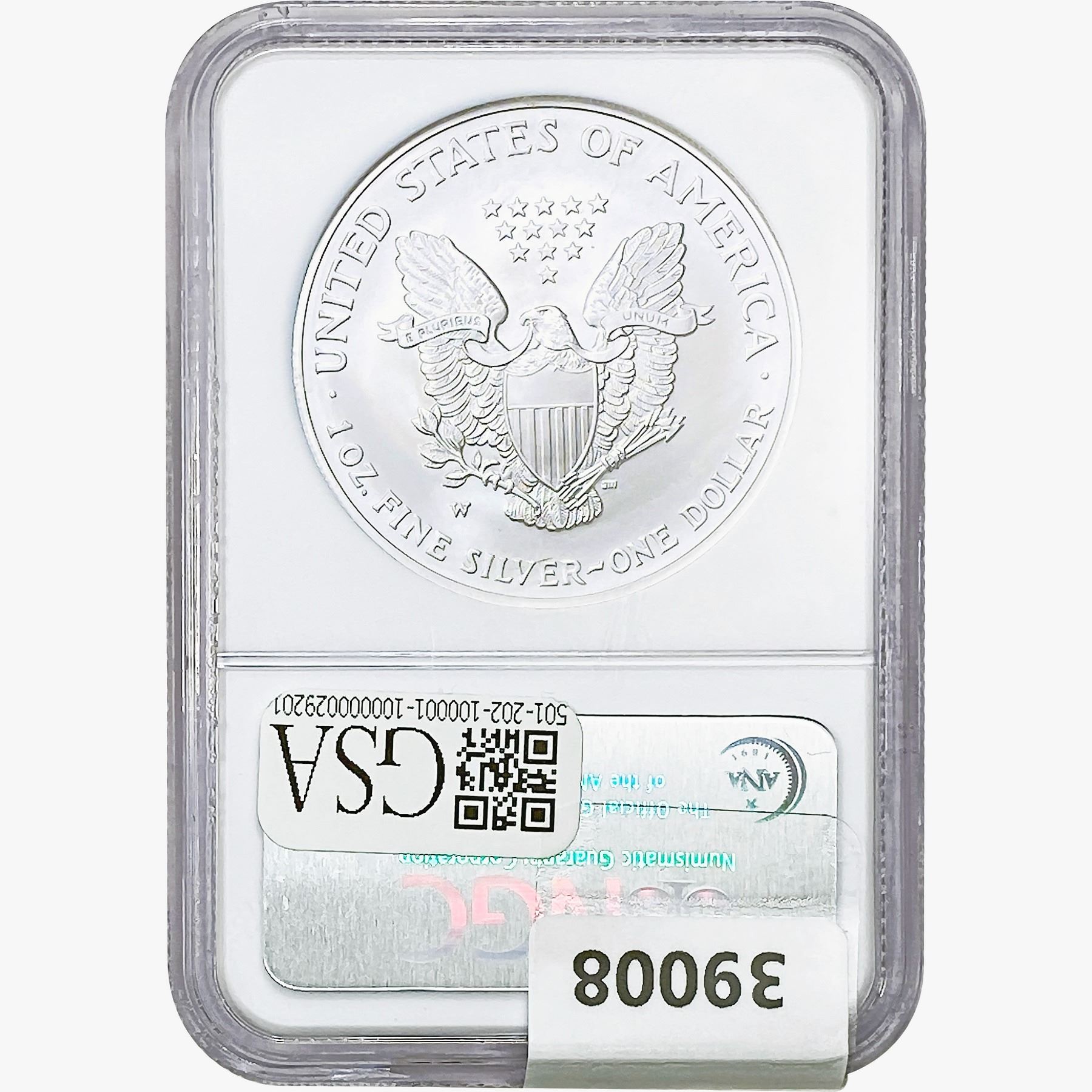 e. Coins sold referencing a third-party grading service are sold “AS IS” without any express or implied warranty, except for a guarantee by GSA that they are genuine. Removal or alteration of the holder, voids all of Bidder’s claims concerning that Product. Certain warranties may be available from the grading services and Bidders are referred to them for further details: Numismatic Guaranty Corporation (NGC), PO Box 4776, Sarasota, FL 34230, www.ngccoin.com/services/writtenguarantee.asp; Professional Coin Grading Services (PCGS), PO Box 9458, Newport Beach, CA 92658, www.pcgs.com/guarantee.html; ANACS, 6555 S. Kenton St., Ste. 303, Englewood, CO 80111; and Independent Coin Grading Co. (ICG), 7901 East Bellview, Ave., Suite 50, Englewood, CO 80111.