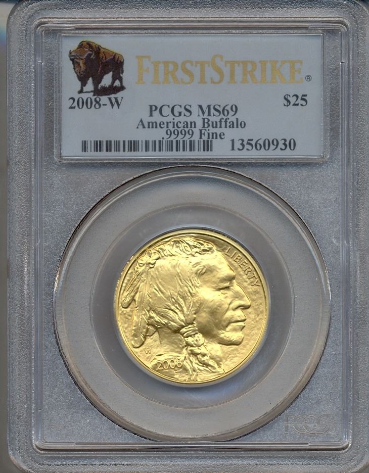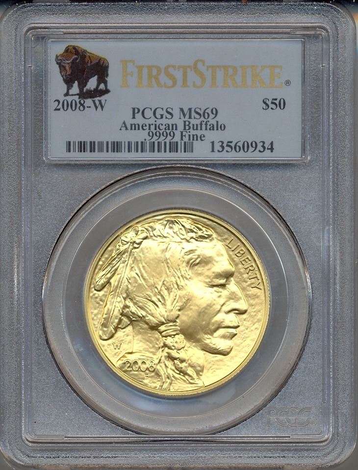 2008-W Set of 4 American Buffalo Gold Coins PCGS MS69. (1) 2008-W $50 American Buffalo Gold Coin PCGS MS69, (1) 2008-W $25 American Buffalo Gold Coin PCGS MS69, (1) 2008-W $10 American Buffalo Gold Coin PCGS MS69, (1) 2008-W $5 American Buffalo Gold Coin PCGS MS69.