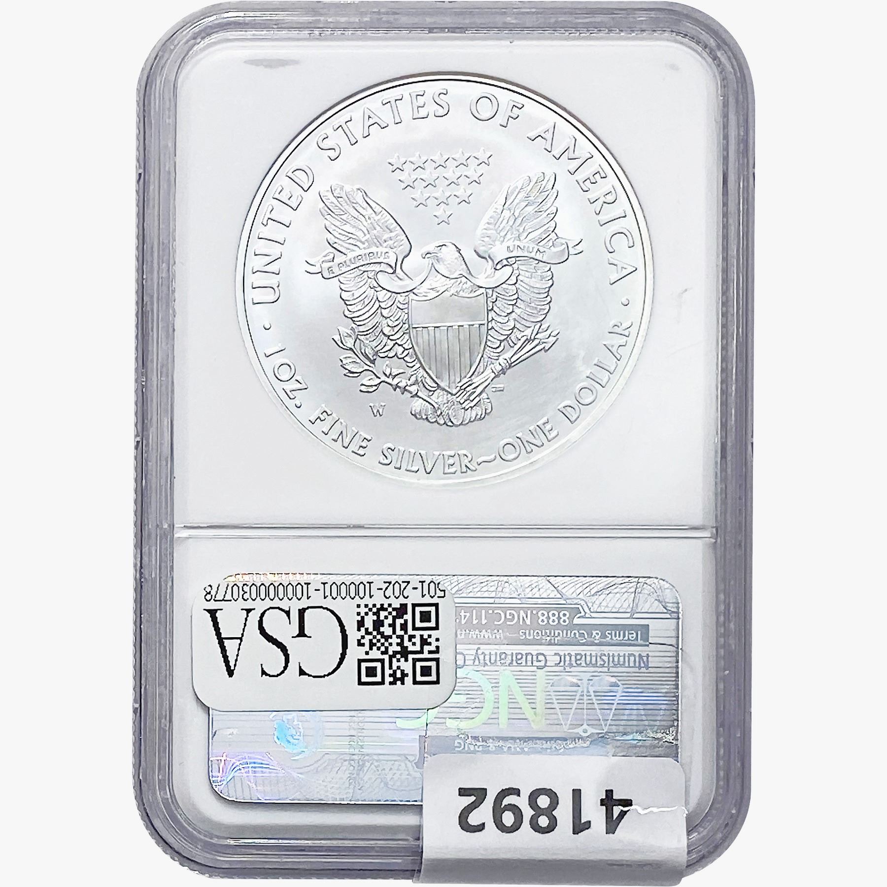 e. Coins sold referencing a third-party grading service are sold “AS IS” without any express or implied warranty, except for a guarantee by GSA that they are genuine. Removal or alteration of the holder, voids all of Bidder’s claims concerning that Product. Certain warranties may be available from the grading services and Bidders are referred to them for further details: Numismatic Guaranty Corporation (NGC), PO Box 4776, Sarasota, FL 34230, www.ngccoin.com/services/writtenguarantee.asp; Professional Coin Grading Services (PCGS), PO Box 9458, Newport Beach, CA 92658, www.pcgs.com/guarantee.html; ANACS, 6555 S. Kenton St., Ste. 303, Englewood, CO 80111; and Independent Coin Grading Co. (ICG), 7901 East Bellview, Ave., Suite 50, Englewood, CO 80111.