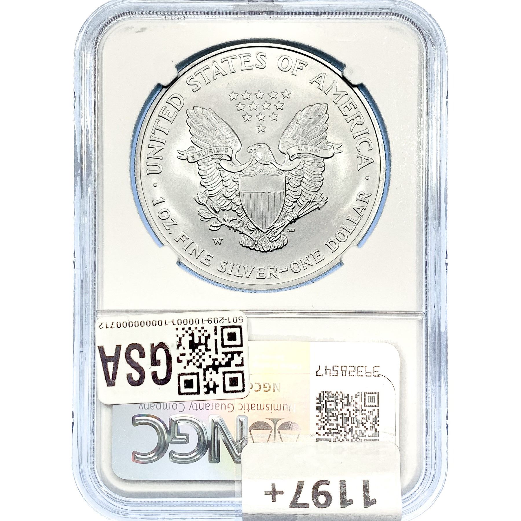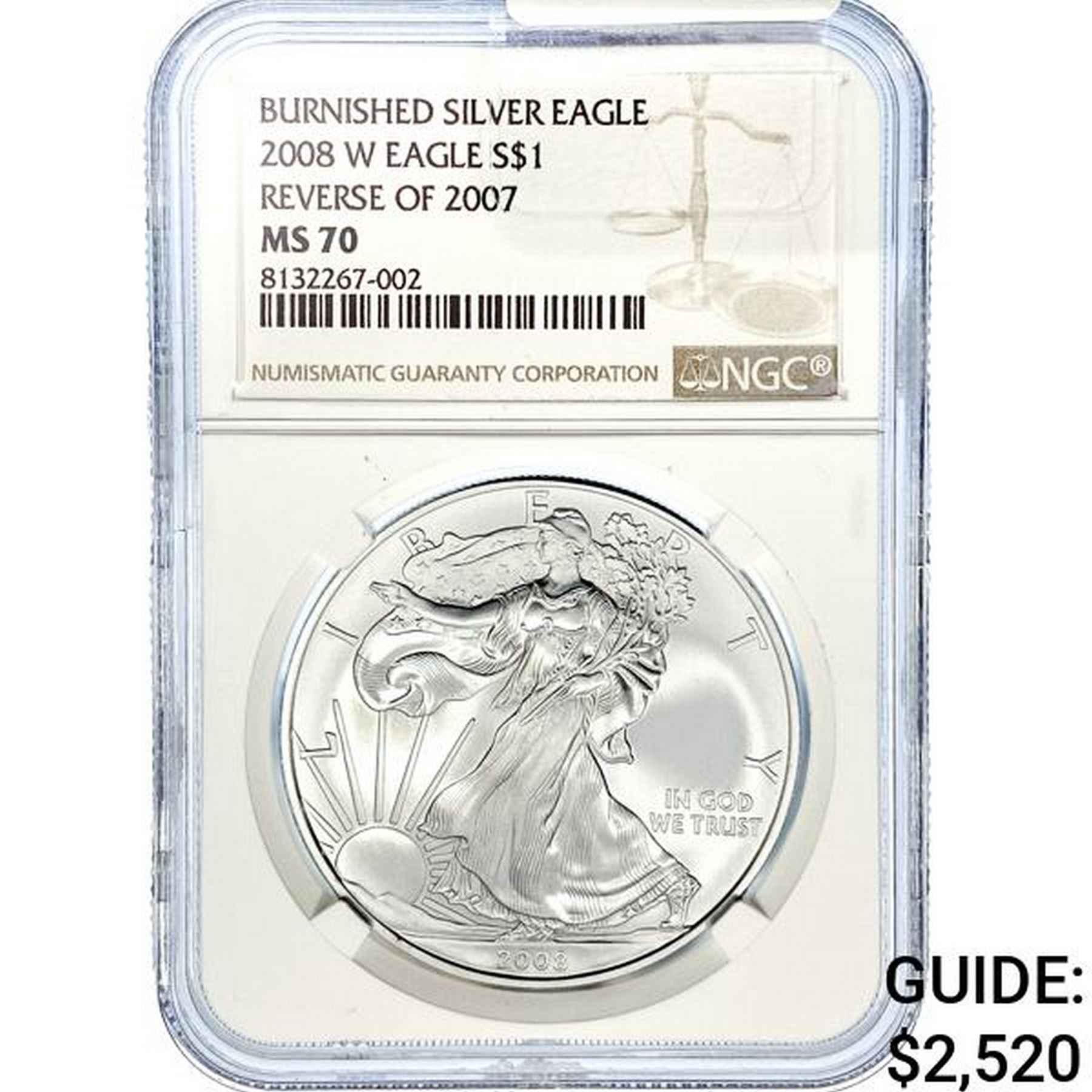 2008-W Silver Eagle NGC MS70 REV 07, Burnished