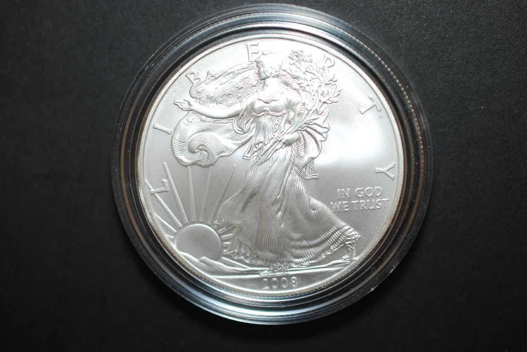 2008-W US Silver American Eagle $1 In Display Box With COA Included; 99.9% Silver 1 Oz.; UNC; EST. $60-80