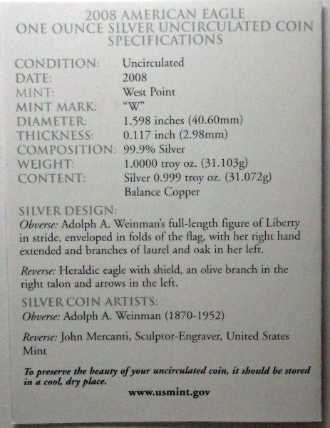 LAST YEAR OF SPECIAL EDITION BURNISHED UNC. ASE WITH "W" MINT MARK, EST. $60.00 TO $70.00