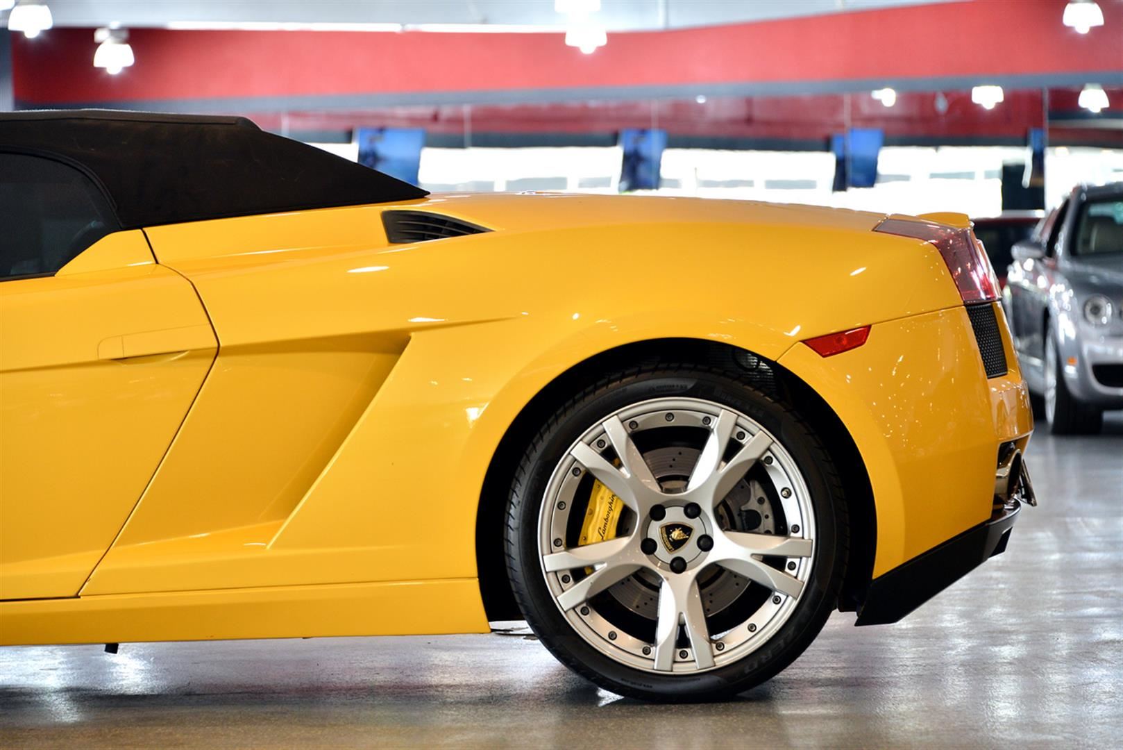 This 2008 Yellow Lamborghini Gallardo Convertible comes equipped with a 5.0L V-10 cyl engine and has 512 HP at 8000 RPM.  It has a mere 1,971 miles and recieves an average of 10 city MPG and 15 highway MPG.  Vin #ZHWNC83T88LA07661.