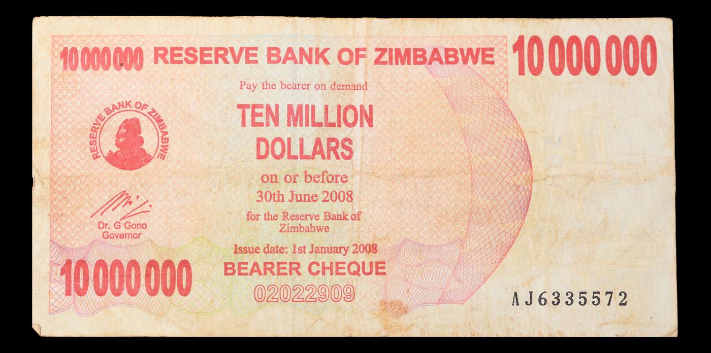 2008 Zimababwe 10 Million Dollar Note P# 55A Grades vf++.