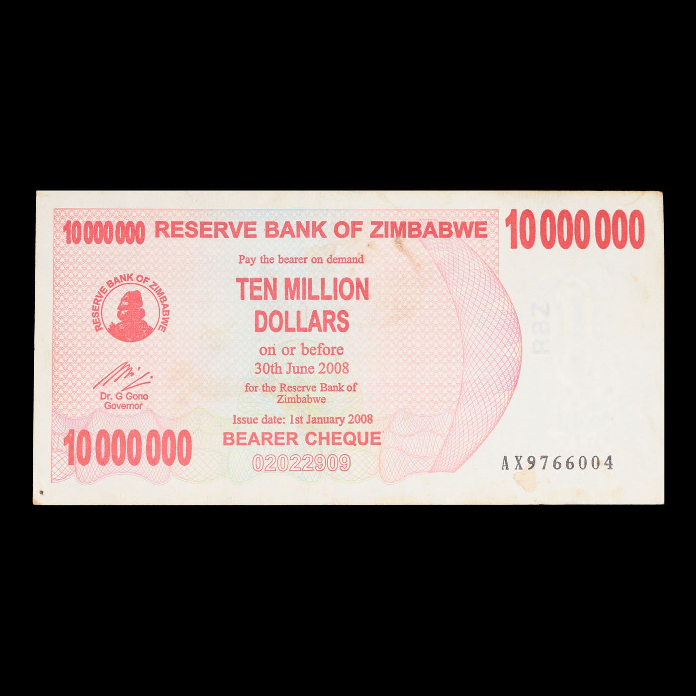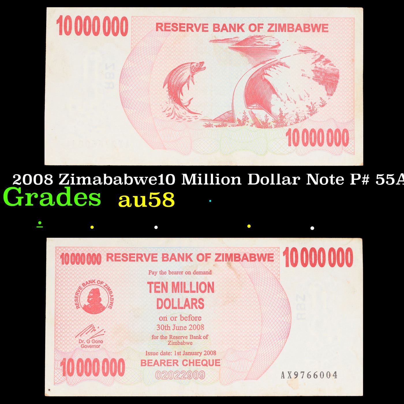 2008 Zimababwe10 Million Dollar Note P# 55A Grades Choice AU/BU Slider.