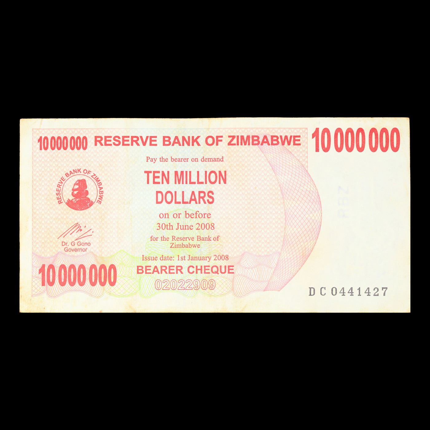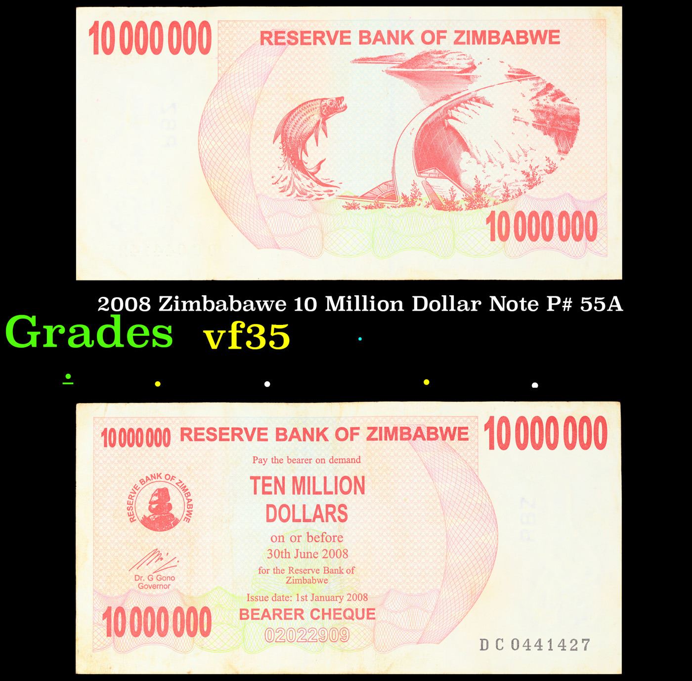 2008 Zimbabawe 10 Million Dollar Note P# 55A Grades vf++.