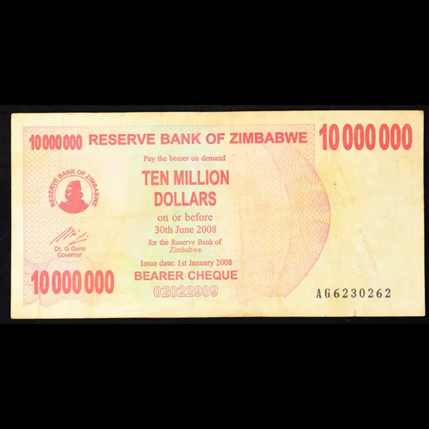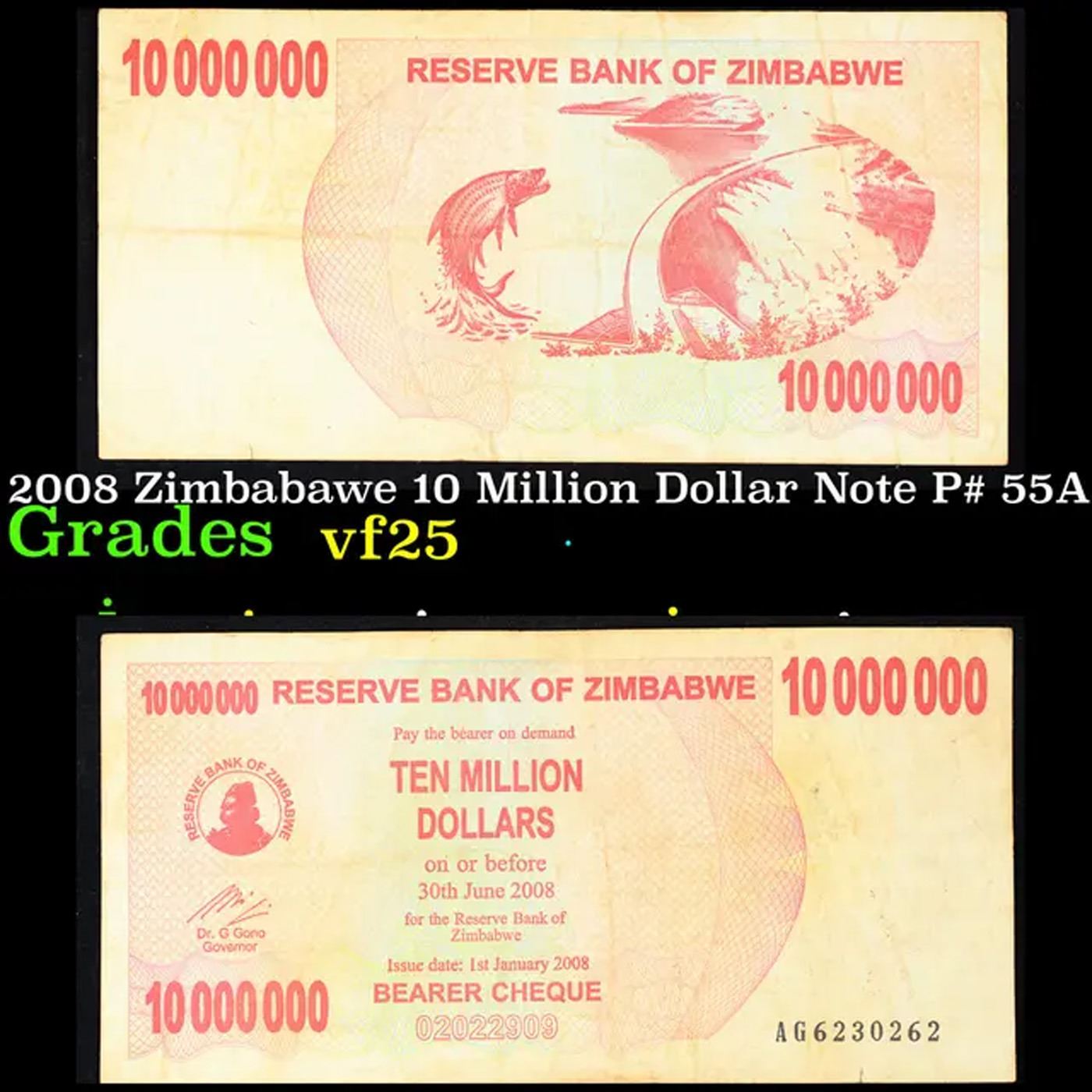 2008 Zimbabawe 10 Million Dollar Note P# 55A Grades vf+.