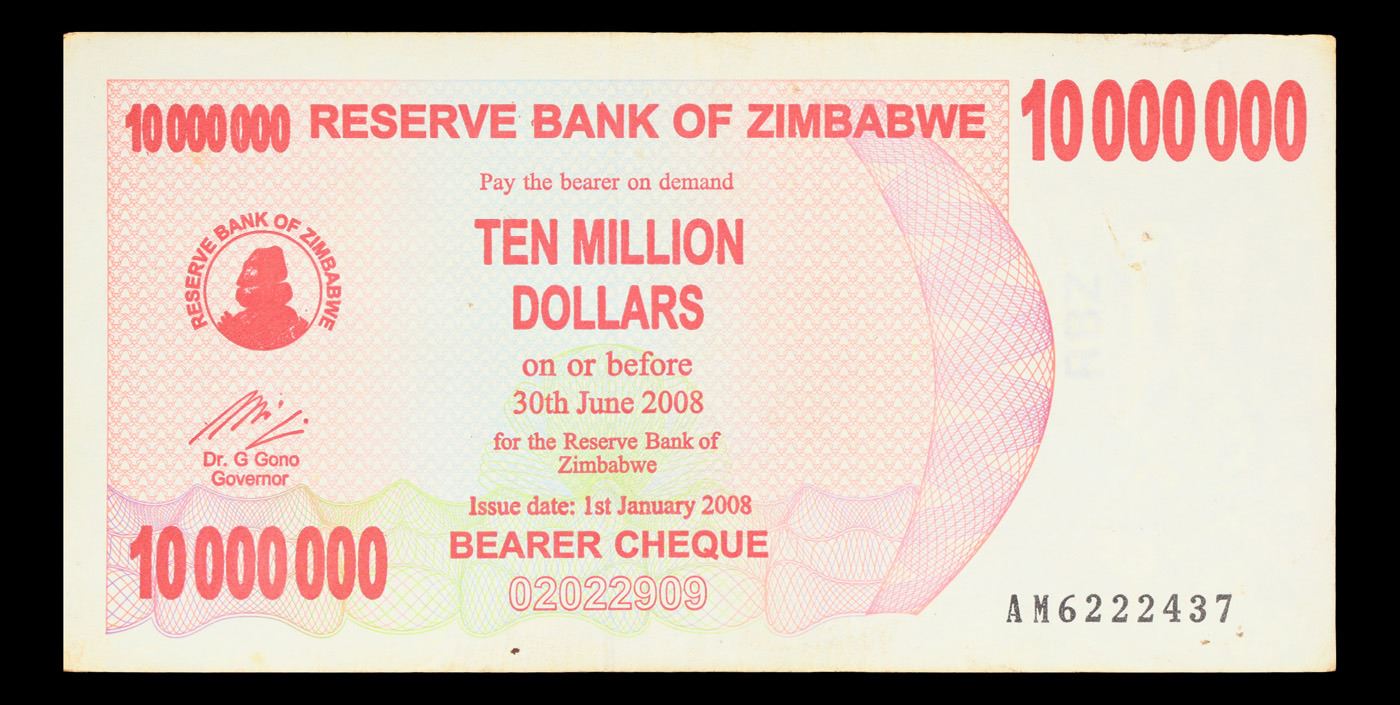 2008 Zimbabwe 10 Million Dollar Note P# 55A Grades Choice AU/BU Slider.