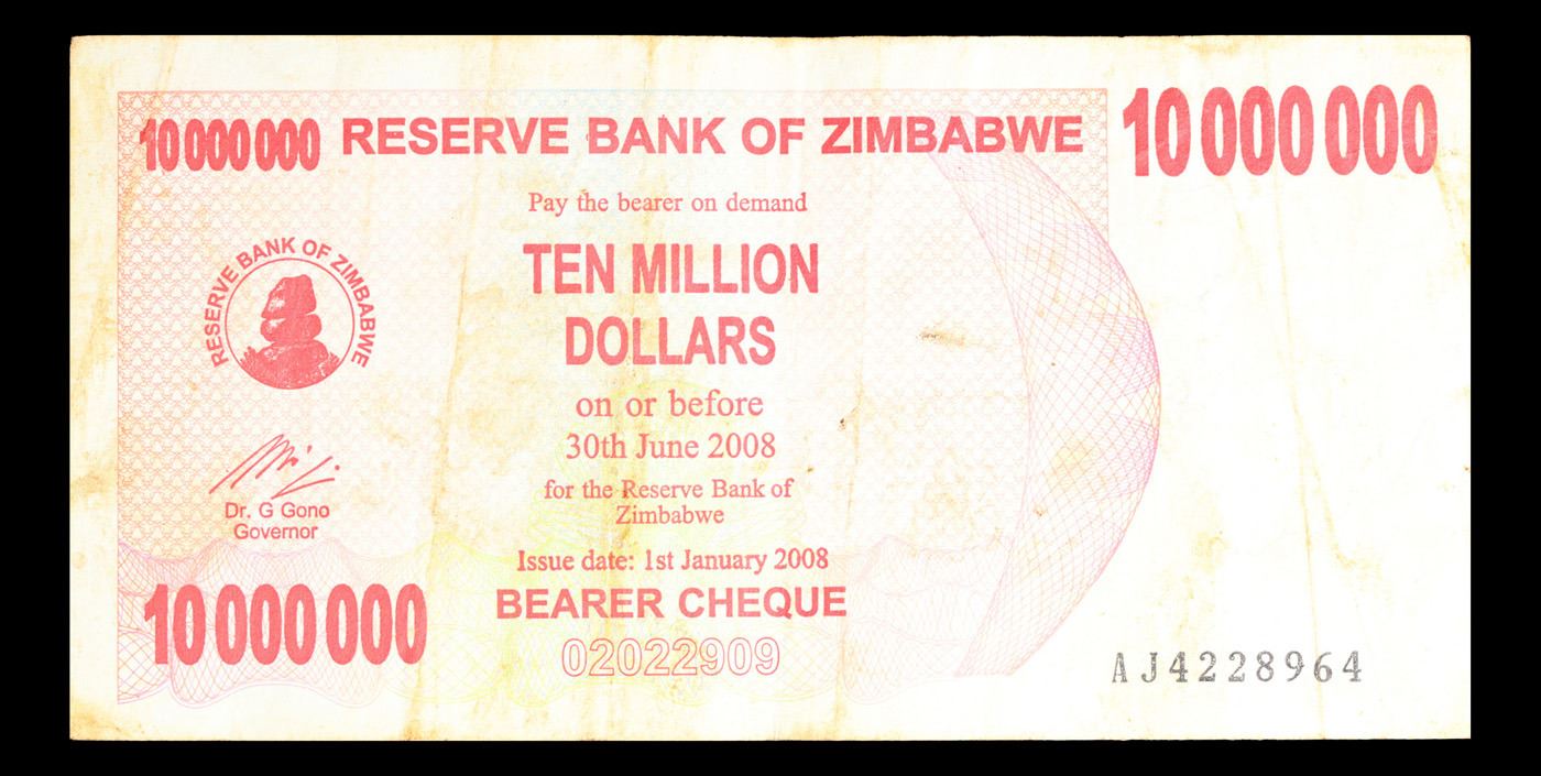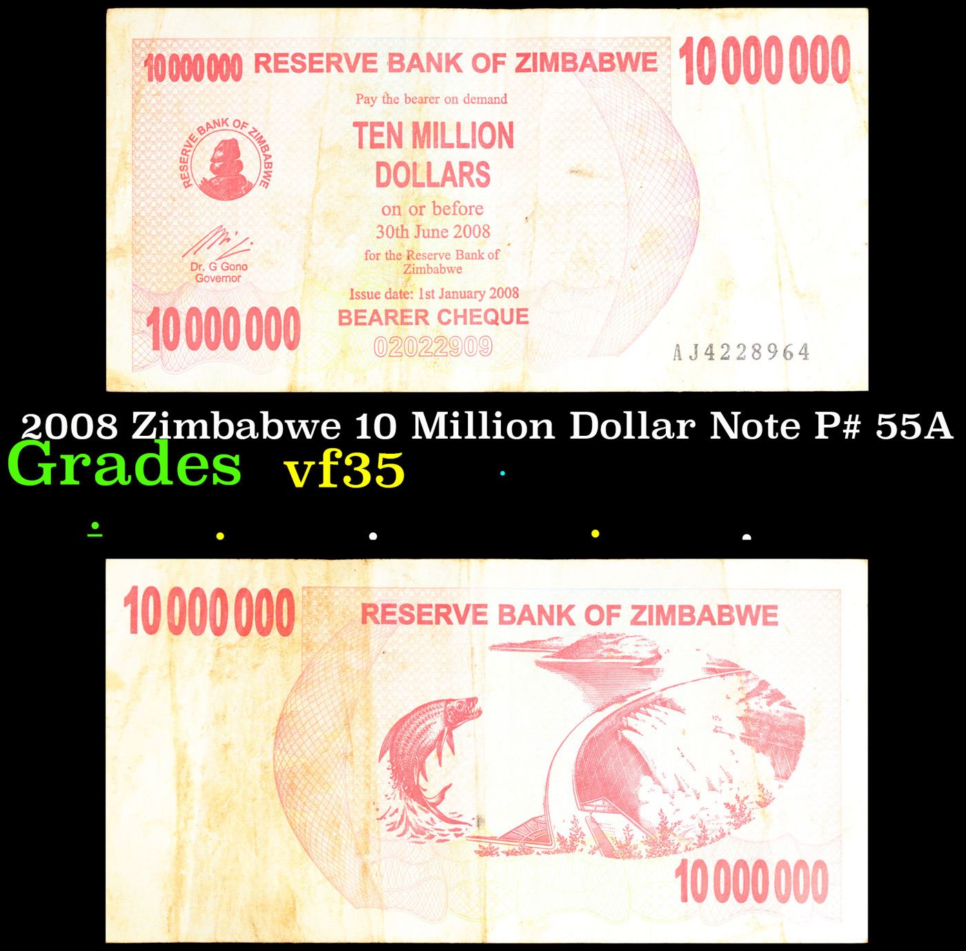 2008 Zimbabwe 10 Million Dollar Note P# 55A Grades vf++.