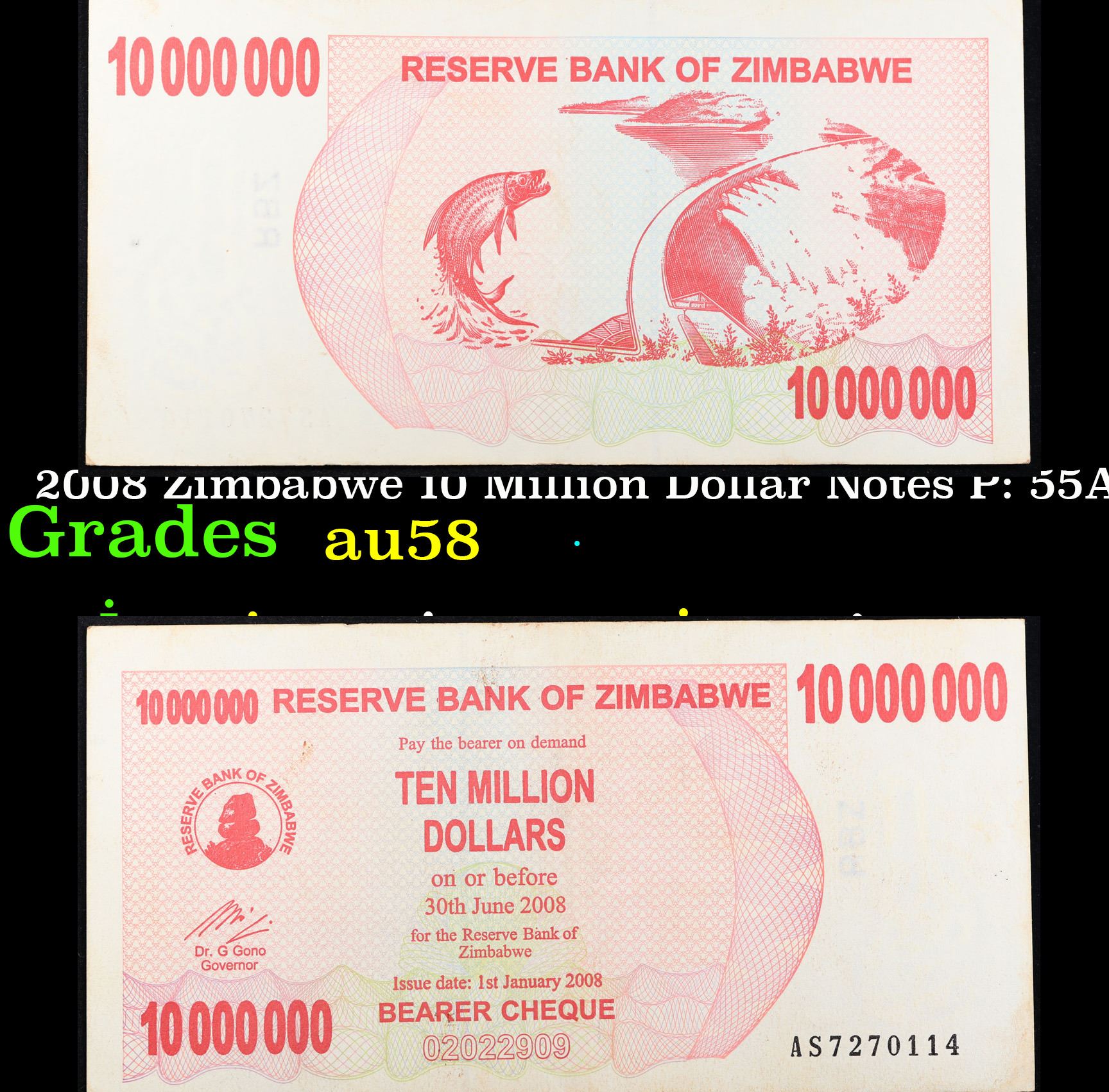 2008 Zimbabwe 10 Million Dollar Notes P: 55A Grades Choice AU/BU Slider.