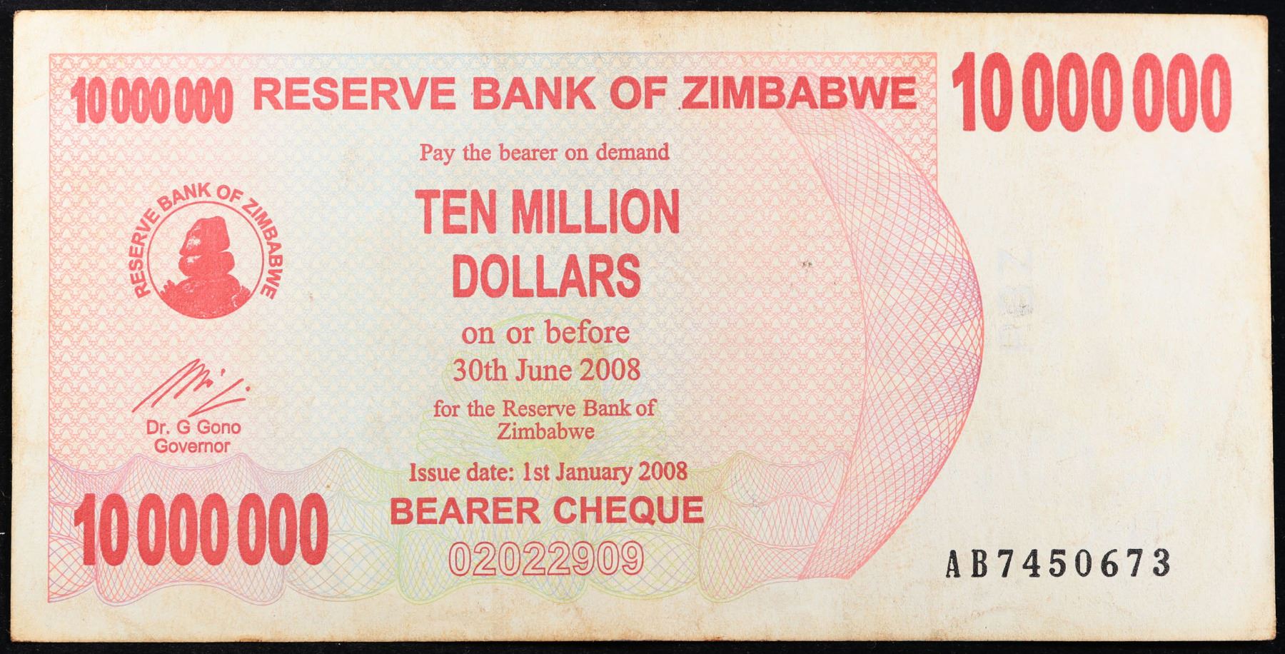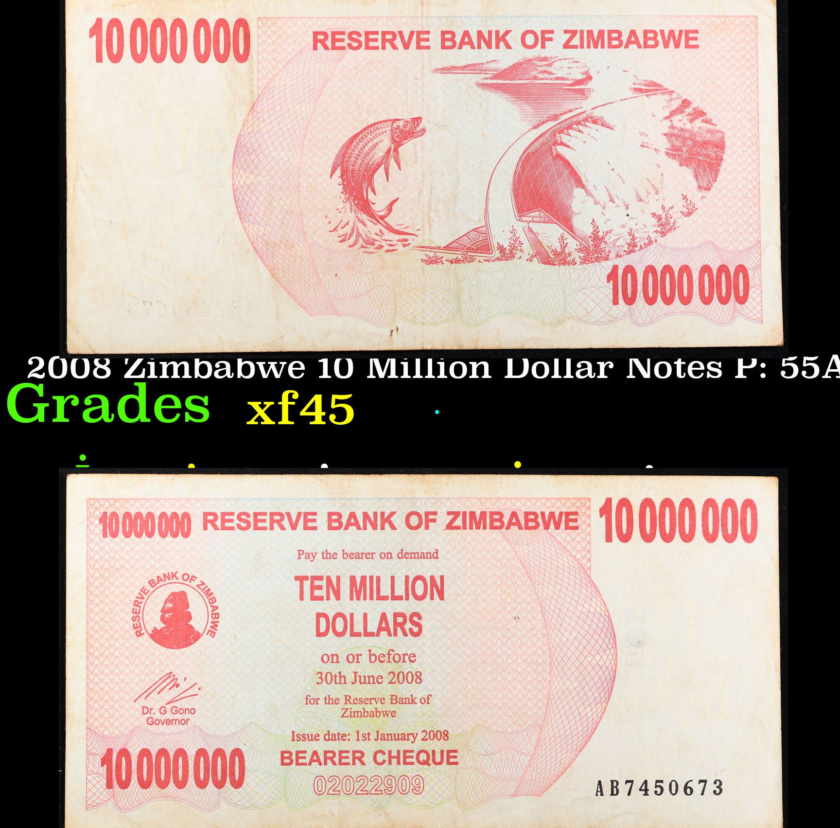2008 Zimbabwe 10 Million Dollar Notes P: 55A Grades xf+.