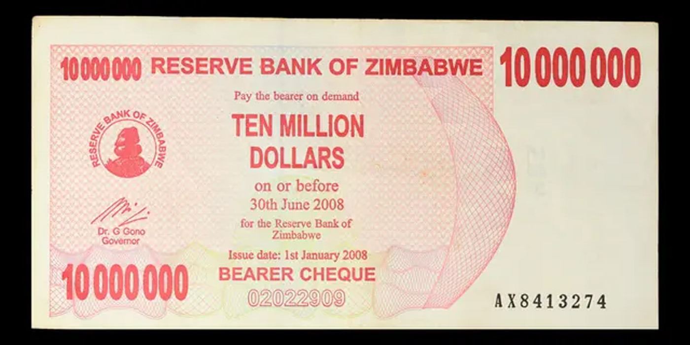 2008 Zimbabwe 10 Million Dollars Note P# 55A Grades Select AU.
