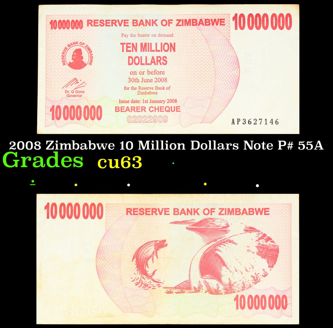 2008 Zimbabwe 10 Million Dollars Note P: 55A Grades Select CU.