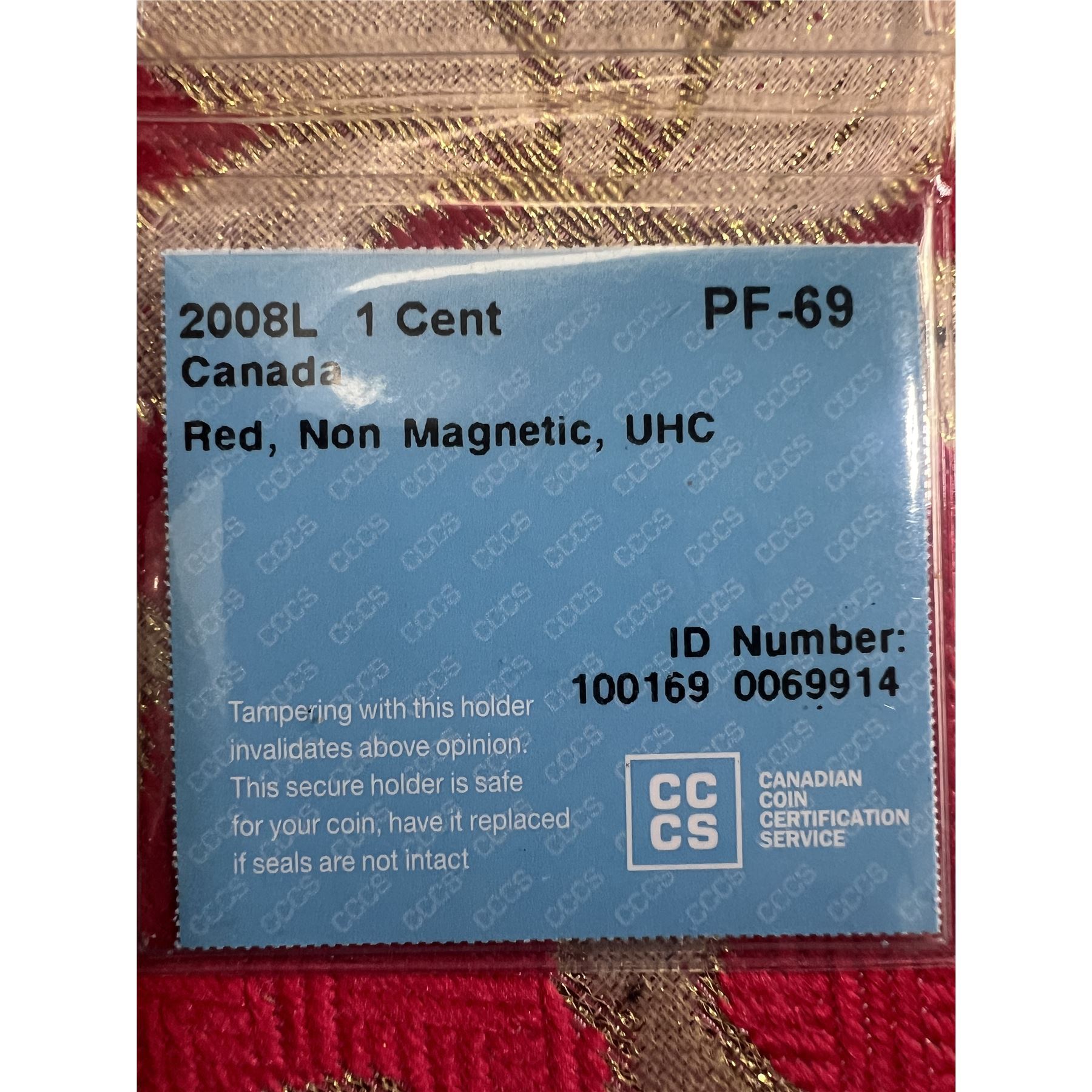 2008L 1 CENT PF-69 RARE RED , NON MAGNETIC , UHC