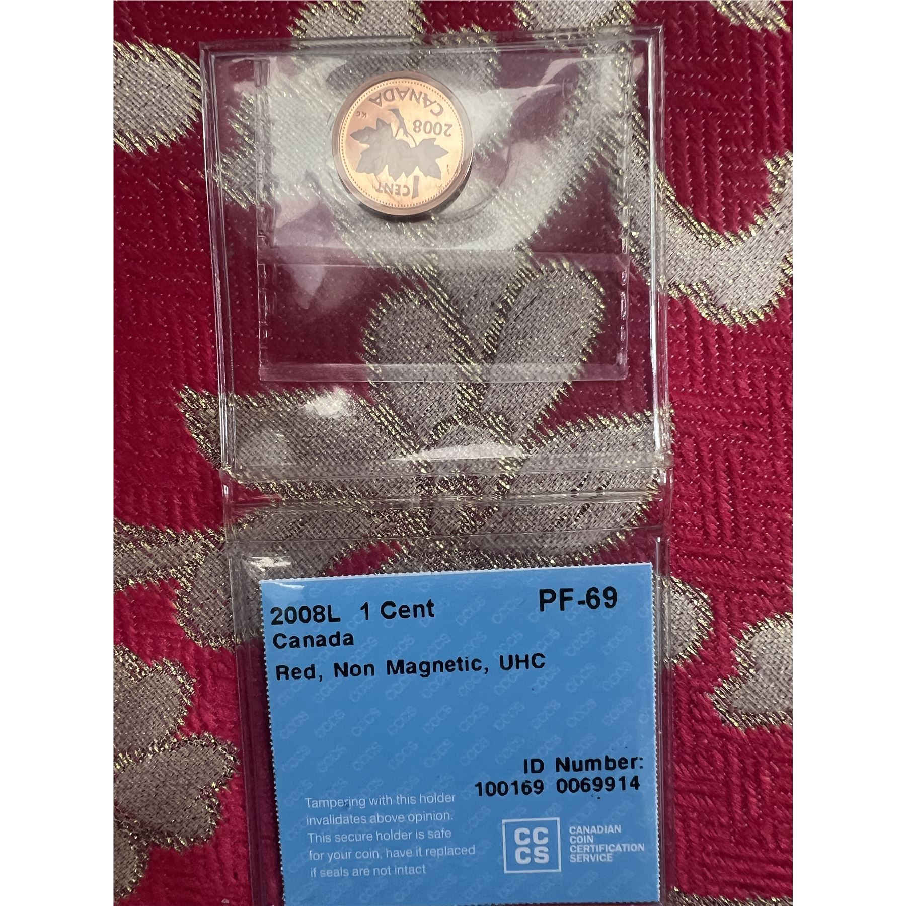 2008L 1 CENT PF-69 RARE RED , NON MAGNETIC , UHC