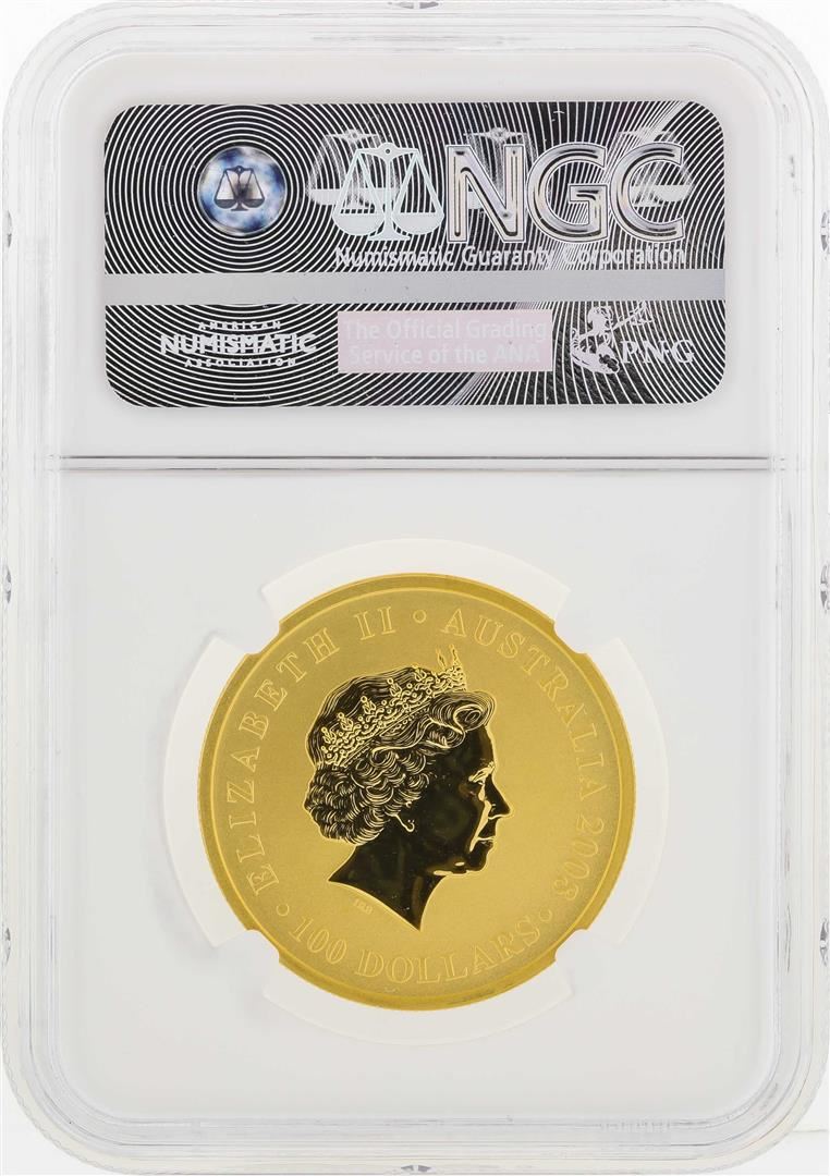 One 2008P $100 Australia Kangaroo Gold Coin NGC MS70. NGC Certified.