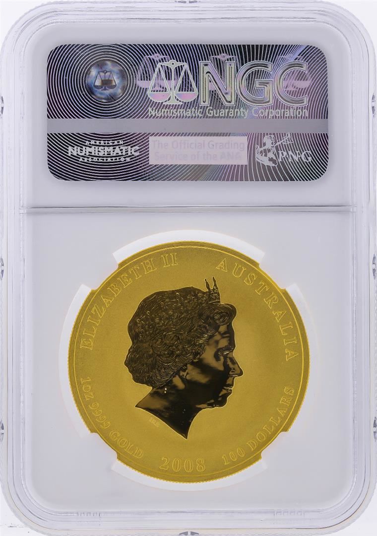 One 2008P $100 Australia Year of the Mouse Gold Coin NGC MS70. NGC Certified.