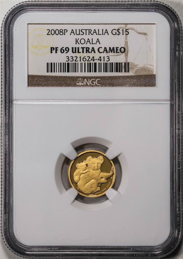 One 2008P $15 Australia Proof Koala Gold Coin NGC PF69 Ultra Cameo. NGC Certified.