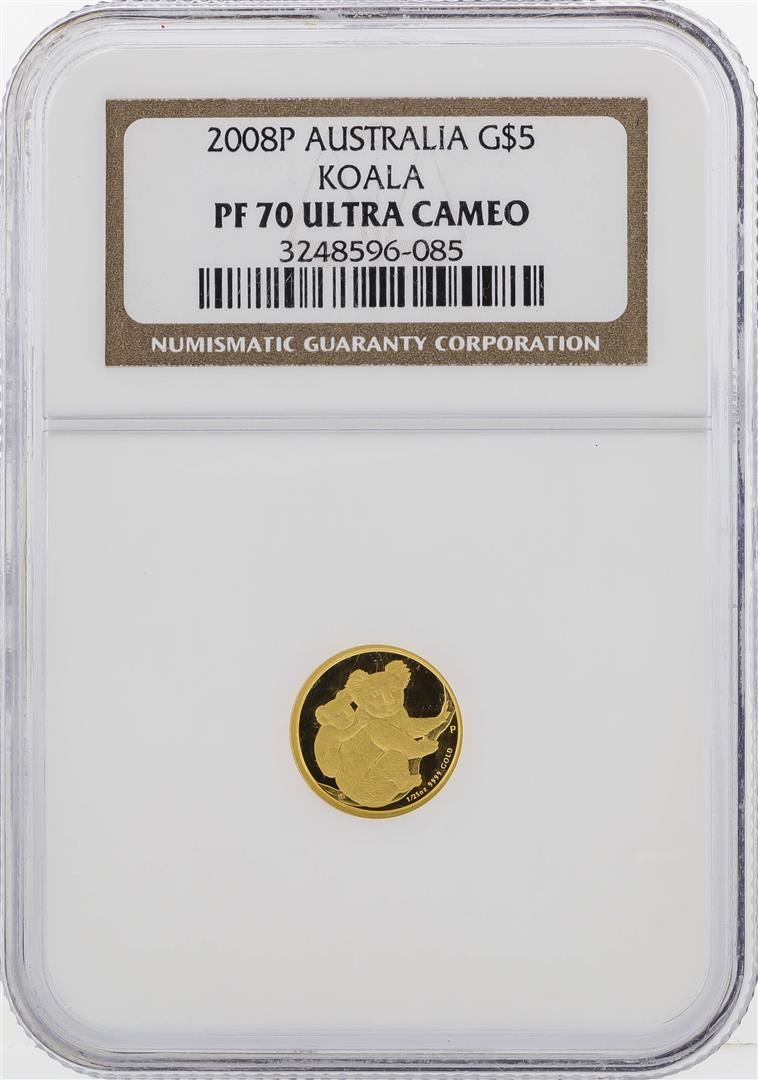 One 2008P $5 Australia Koala Gold Coin NGC PF70 Ultra Cameo. NGC Certified.