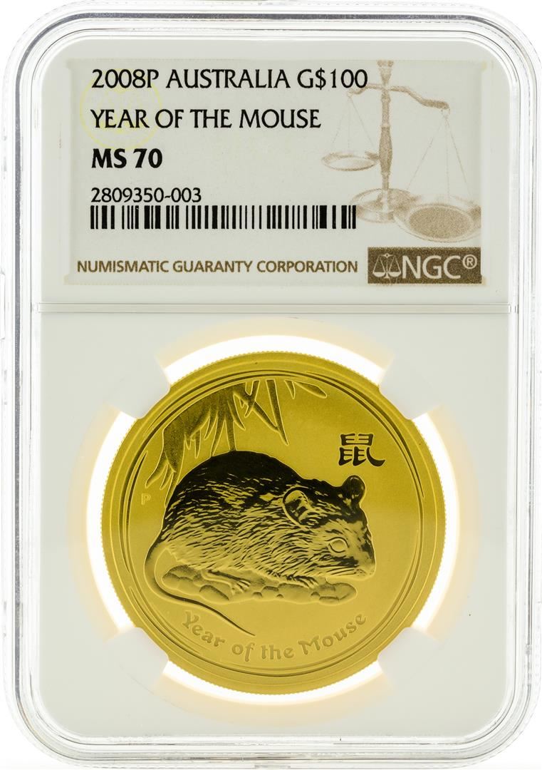 One 2008P NGC MS70 $100 Year Of The Mouse Gold Coin. NGC Certified.